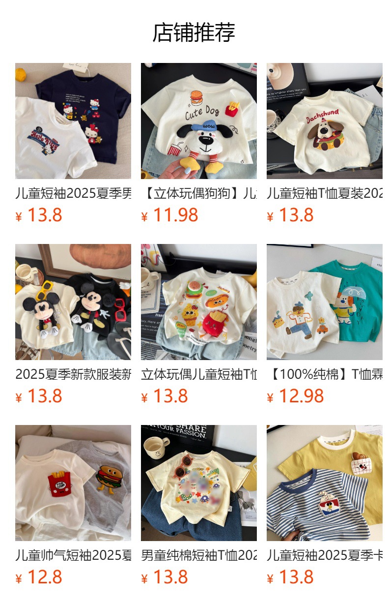 3 차원 인형 부모-자식 반팔 티셔츠 여름 2025 새로운 느슨한 만화 탑 외국 스타일의 겉옷 탑 도매