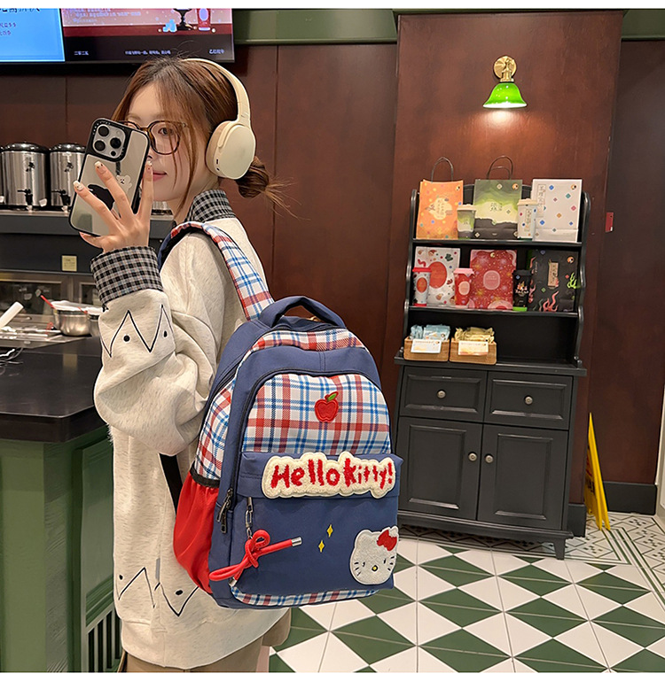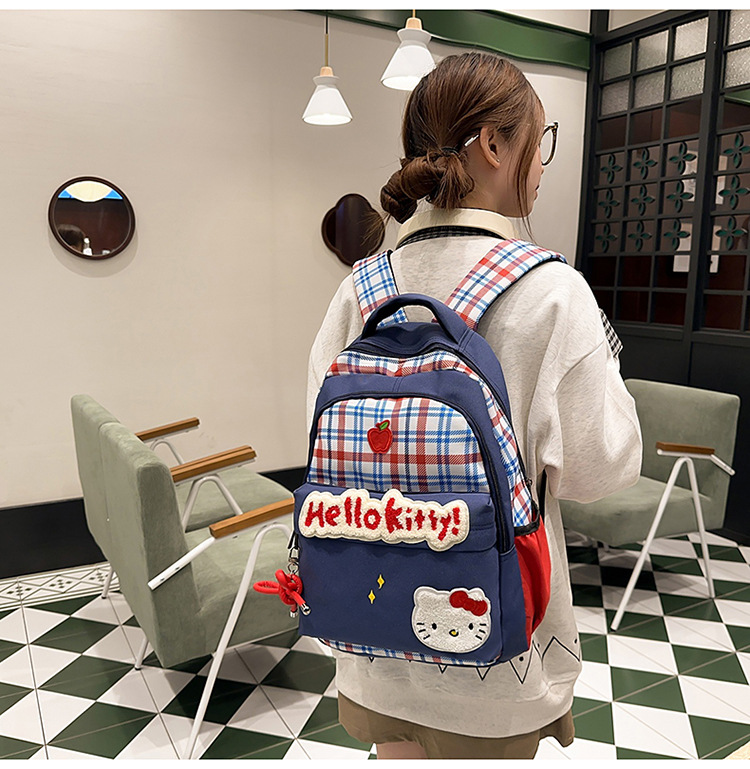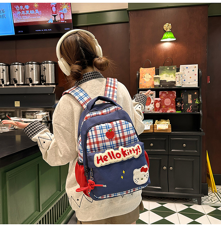일본 스타일 배낭 새로운 한국 스타일 레트로 격자 무늬 틈새 귀여운 만화 키티 고양이 대용량 경량 Schoolbag
