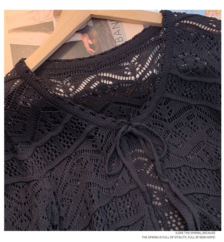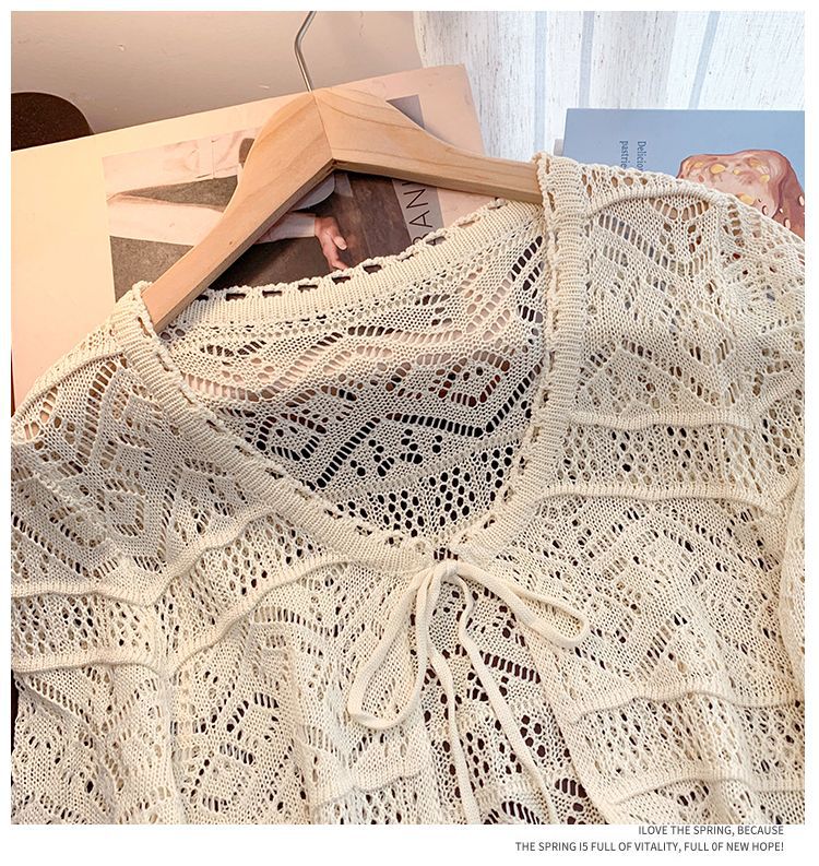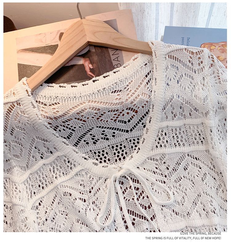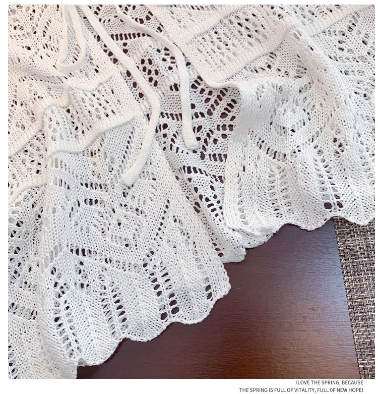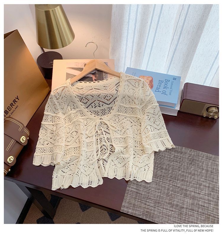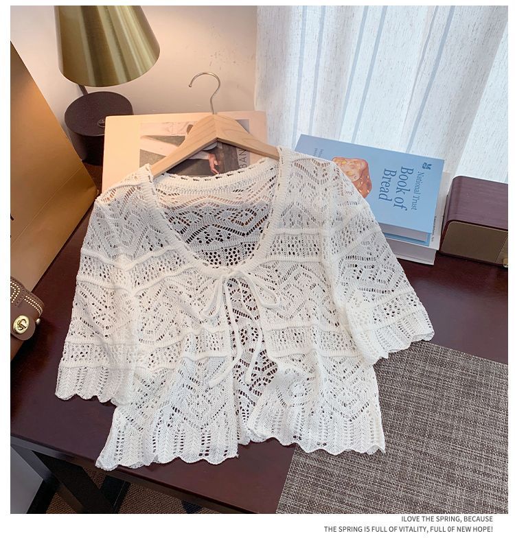 여성을위한 여름 흰색 자외선 차단제 카디건 2025 새로운 스타일의 숄과 서스펜더 블라우스 중공 쉬폰 탑