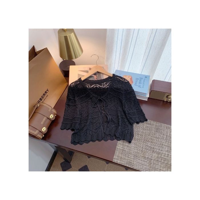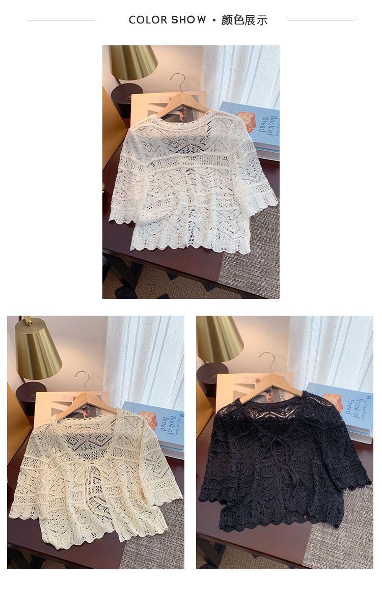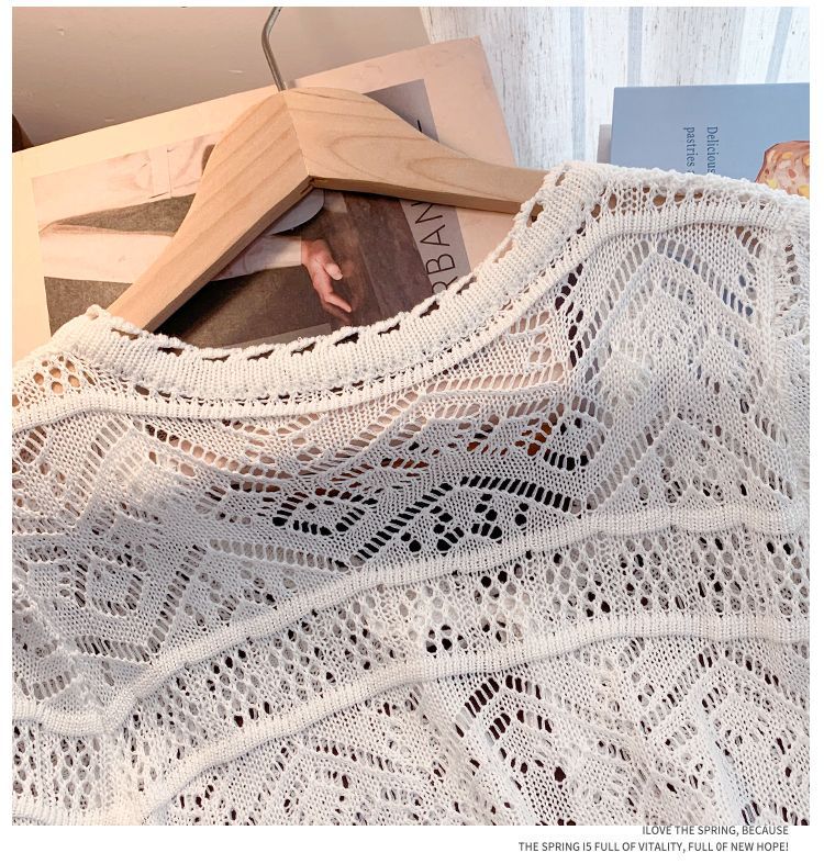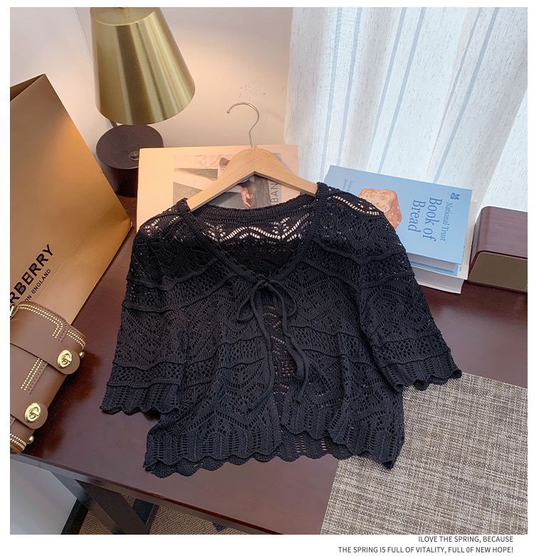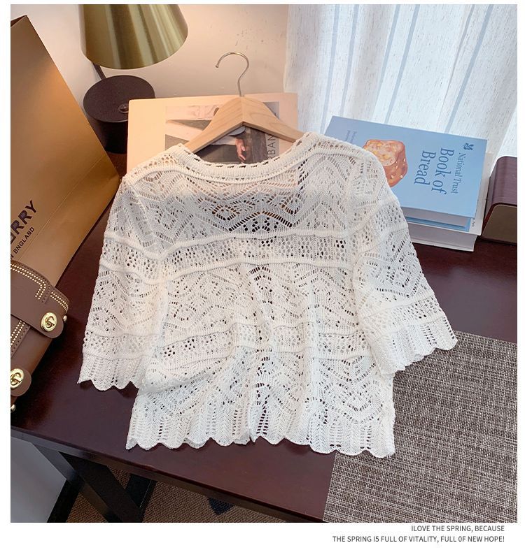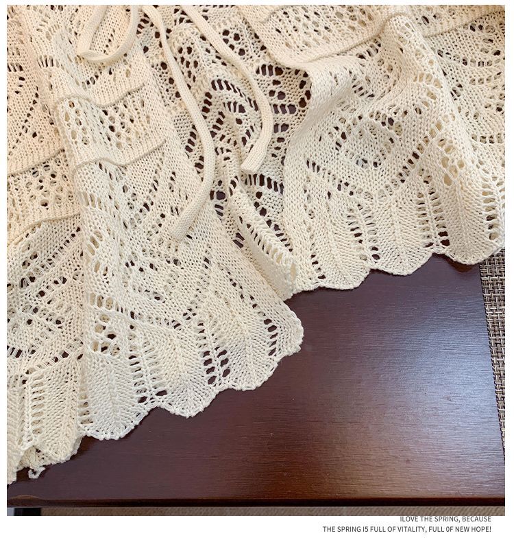 여성을위한 여름 흰색 자외선 차단제 카디건 2025 새로운 스타일의 숄과 서스펜더 블라우스 중공 쉬폰 탑