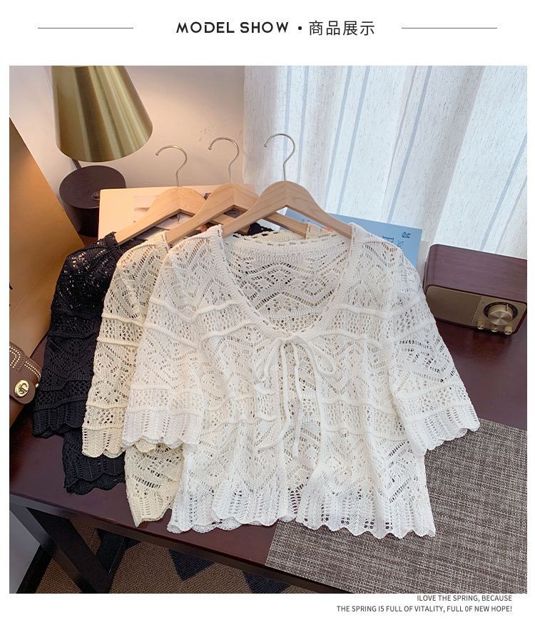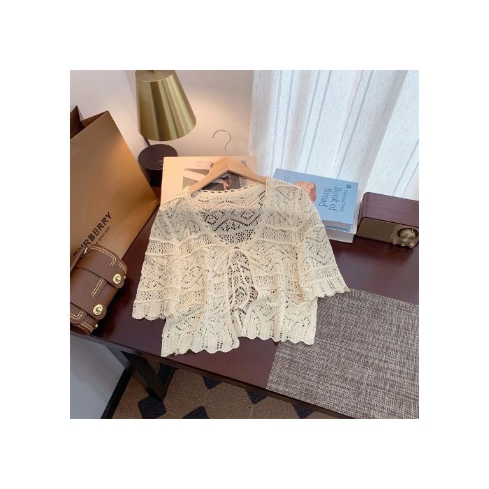 여성을위한 여름 흰색 자외선 차단제 카디건 2025 새로운 스타일의 숄과 서스펜더 블라우스 중공 쉬폰 탑스토어 가기