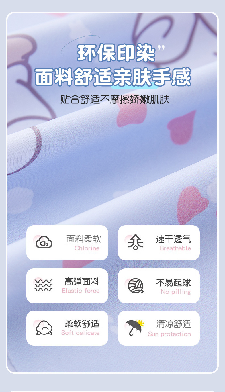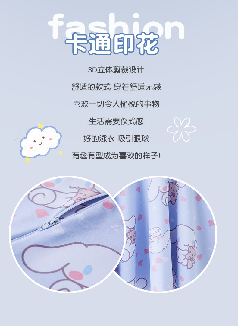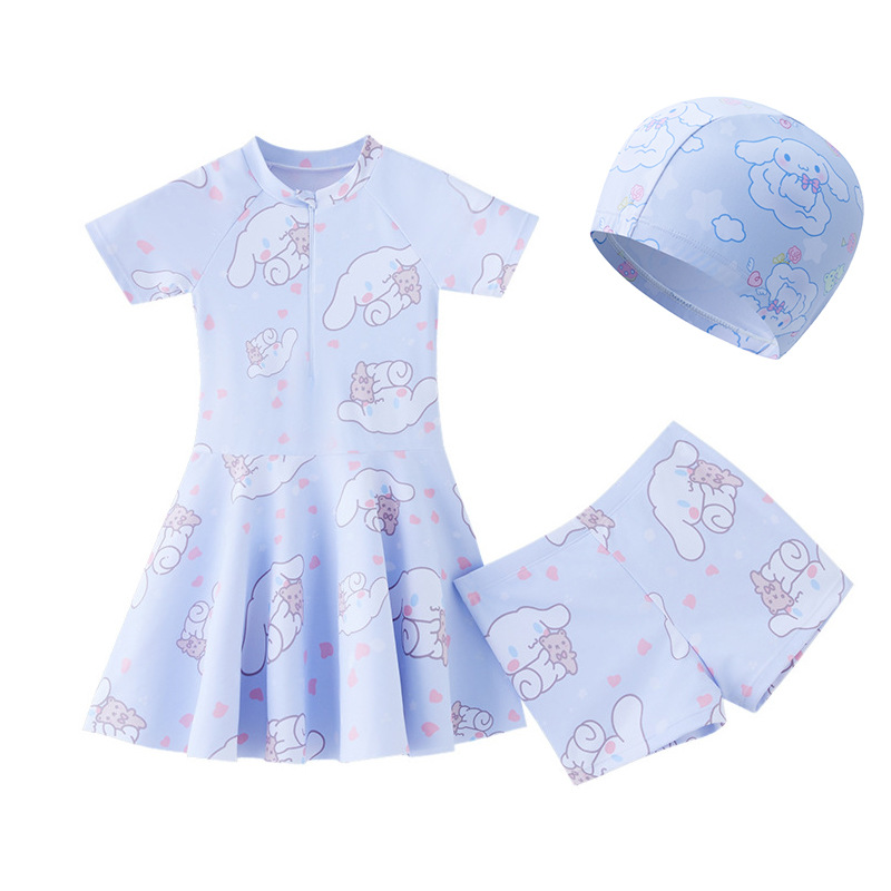 큰 귀 개 어린이 수영복 분할 작은, 중형 및 대형 어린이 만화 인쇄 수영복 스포츠 태양 보호 빠른 건조 여자 수영복