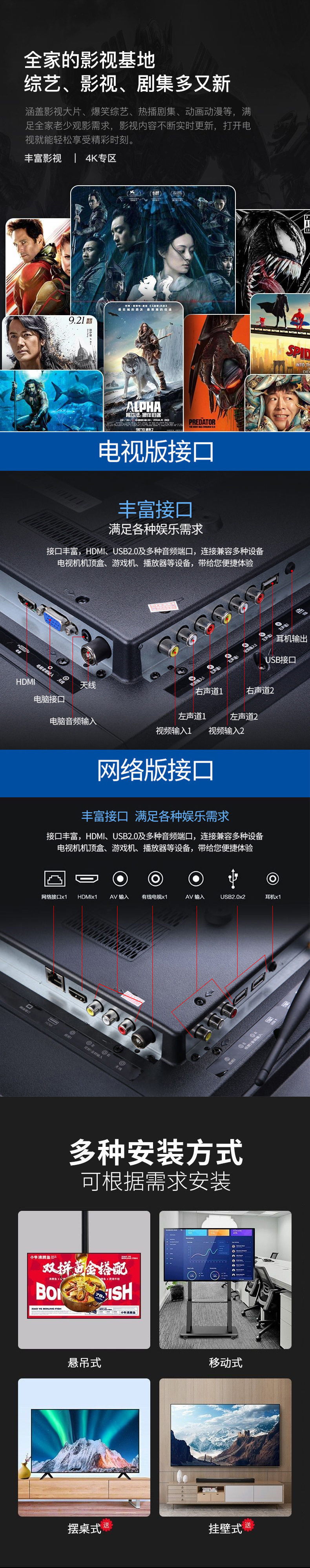 4K 울트라 클리어 LCD TV 19/22/24/ 32inch 노인을 위한 네트워크 스마트 Wi-Fi 소형스토어 가기