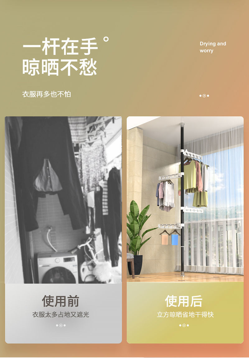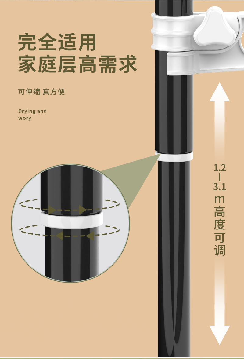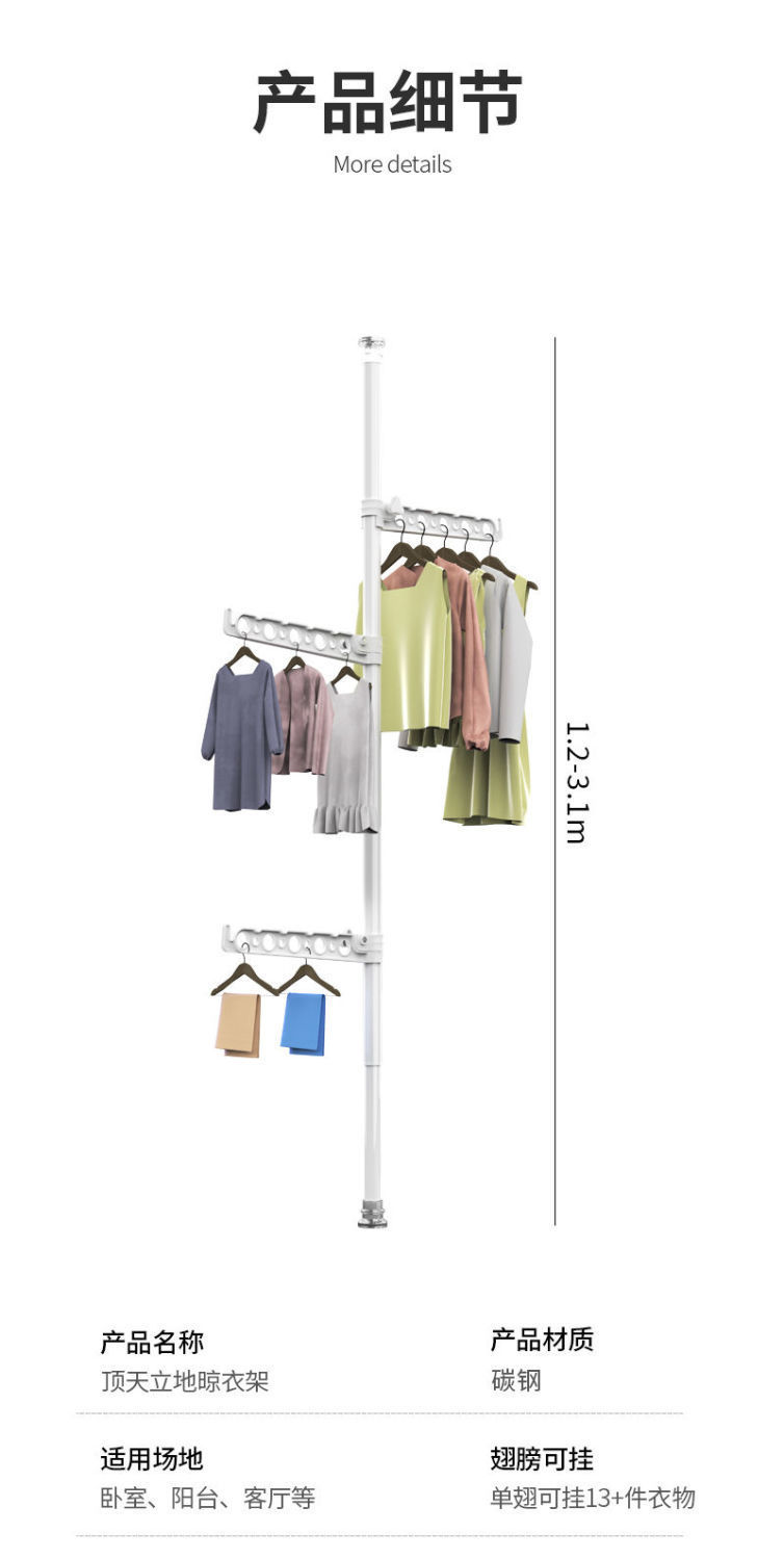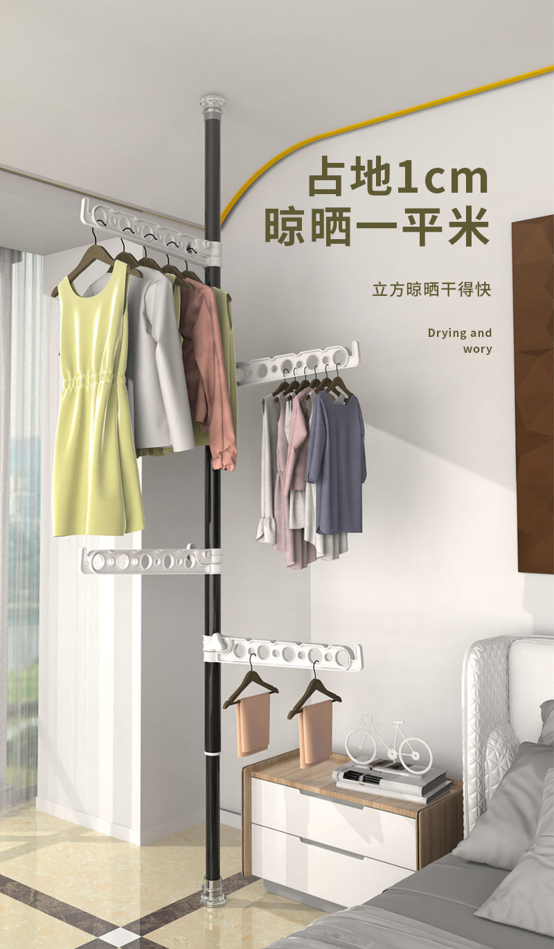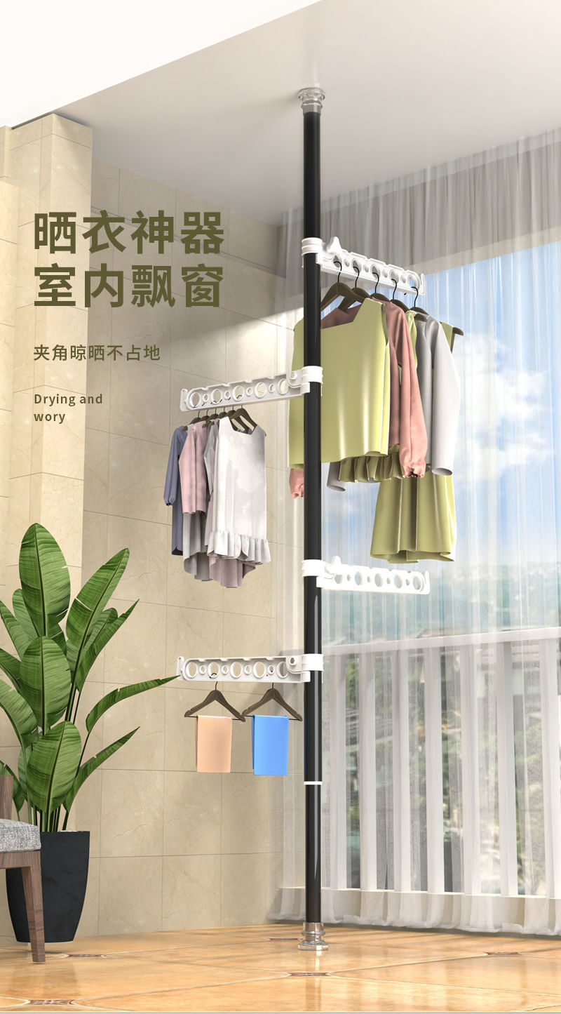 가정용 바닥에서 천장까지 옷걸이, 침실에 구멍을 뚫을 필요 없음, 텔레스코픽 발코니 베이 창, 옷걸이 공급