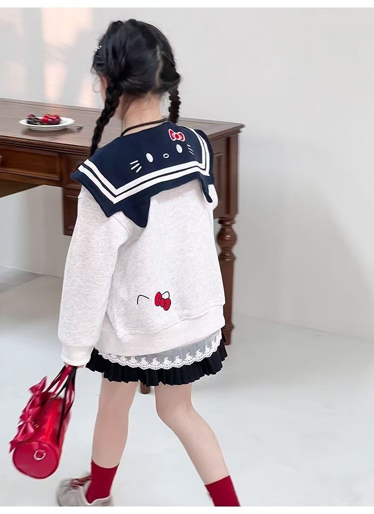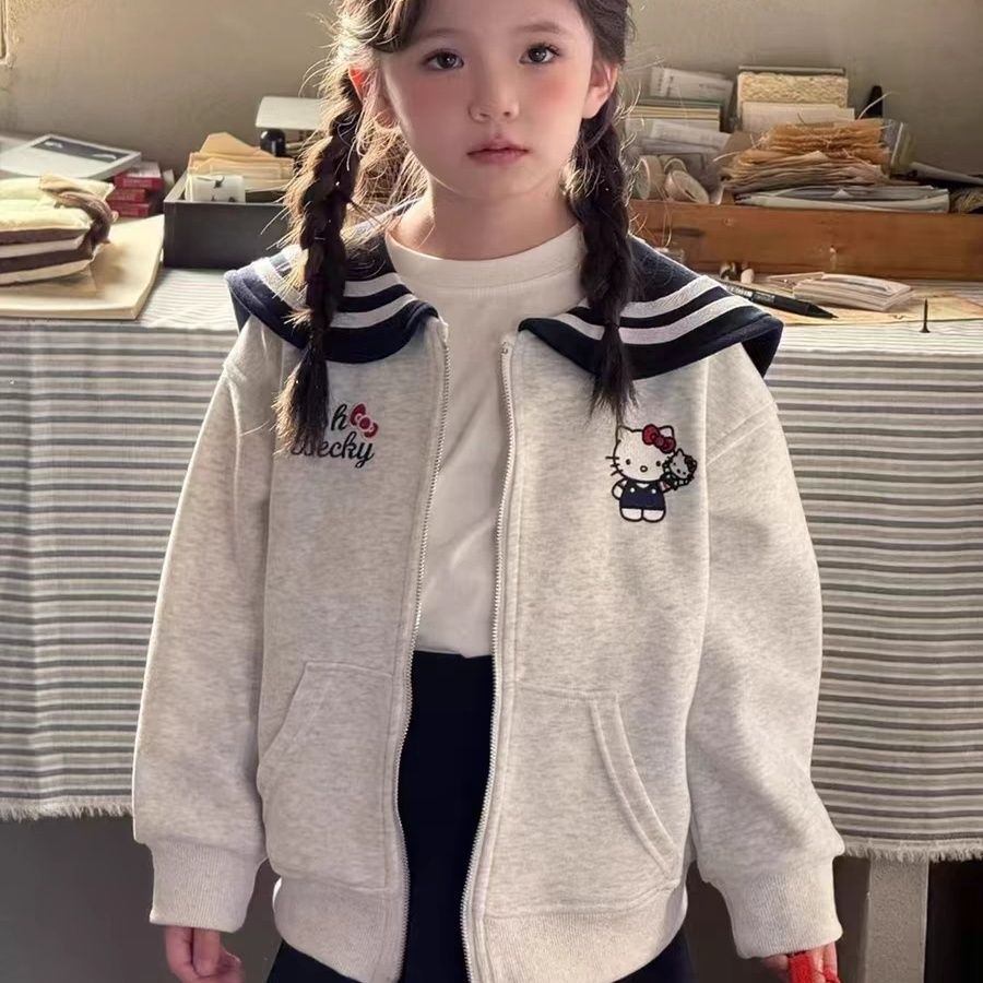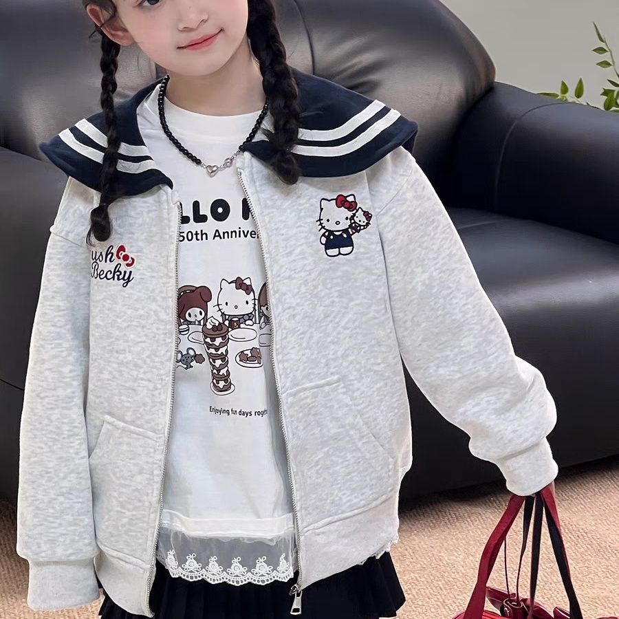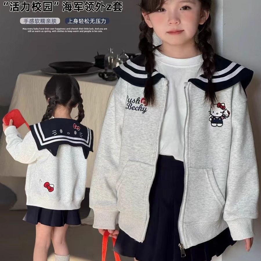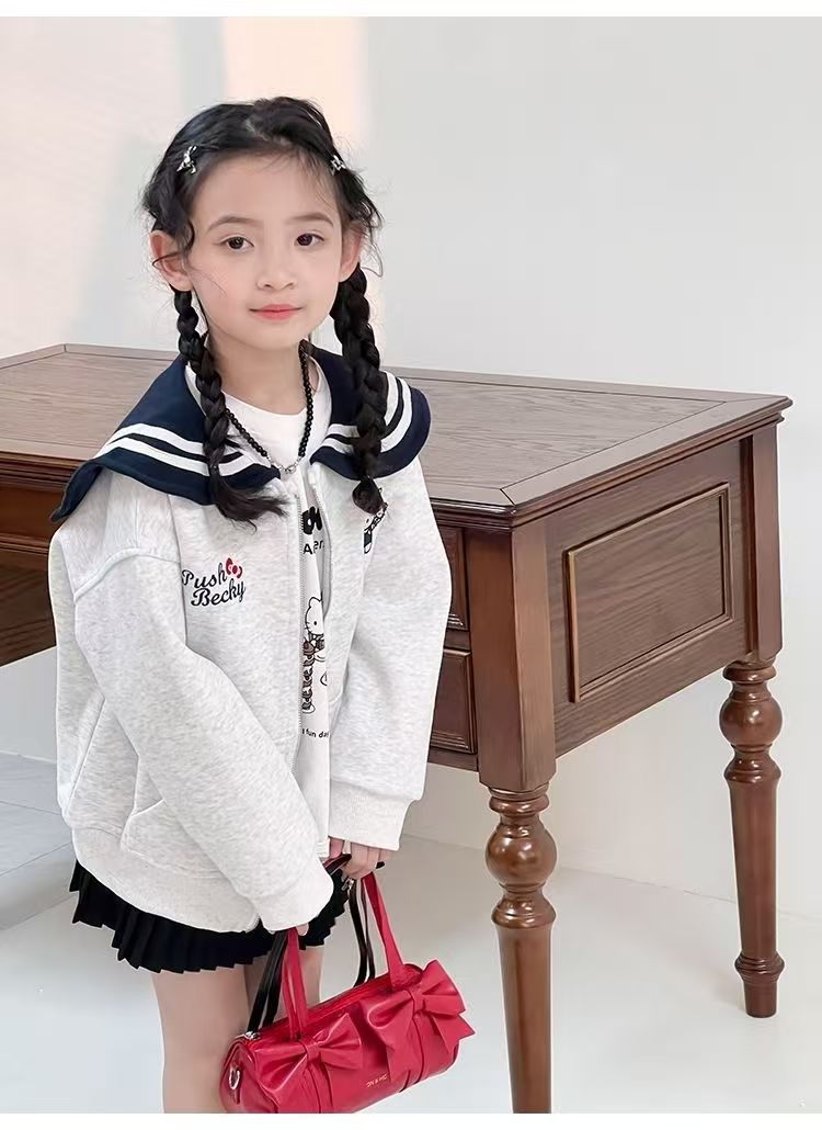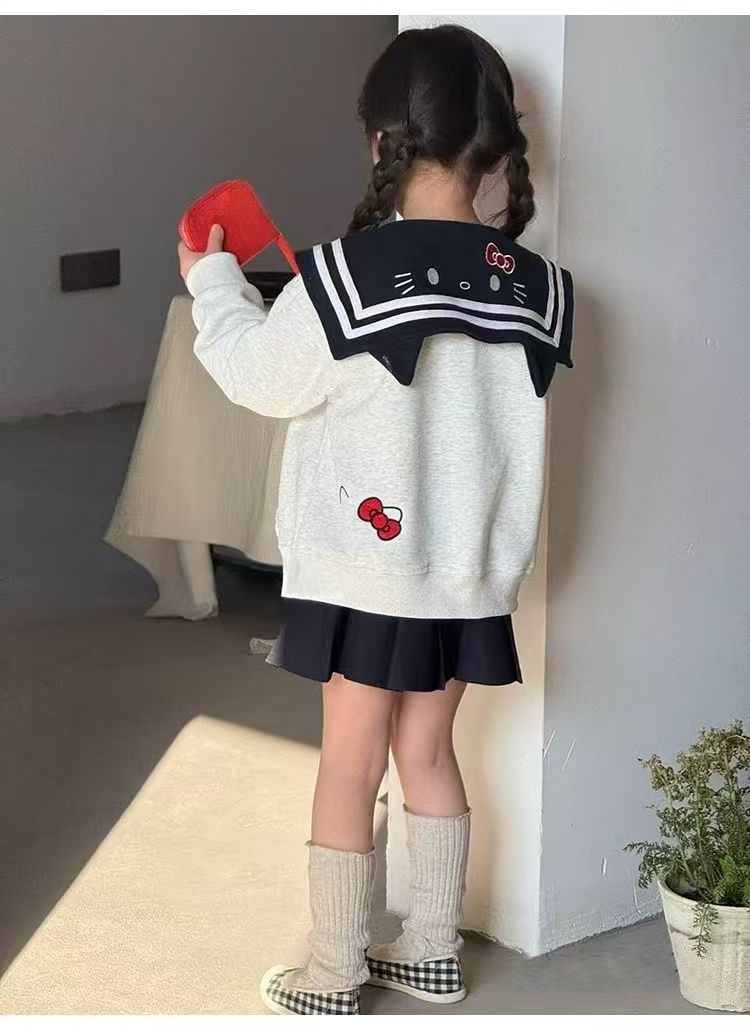 여아 코트 2025 봄 신작 아동 스타일 네이비 칼라 탑 중대형 아동 한국어 버전 만화 긴팔 가디건스토어 가기