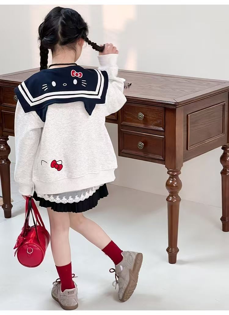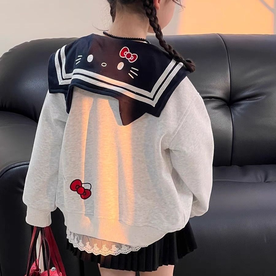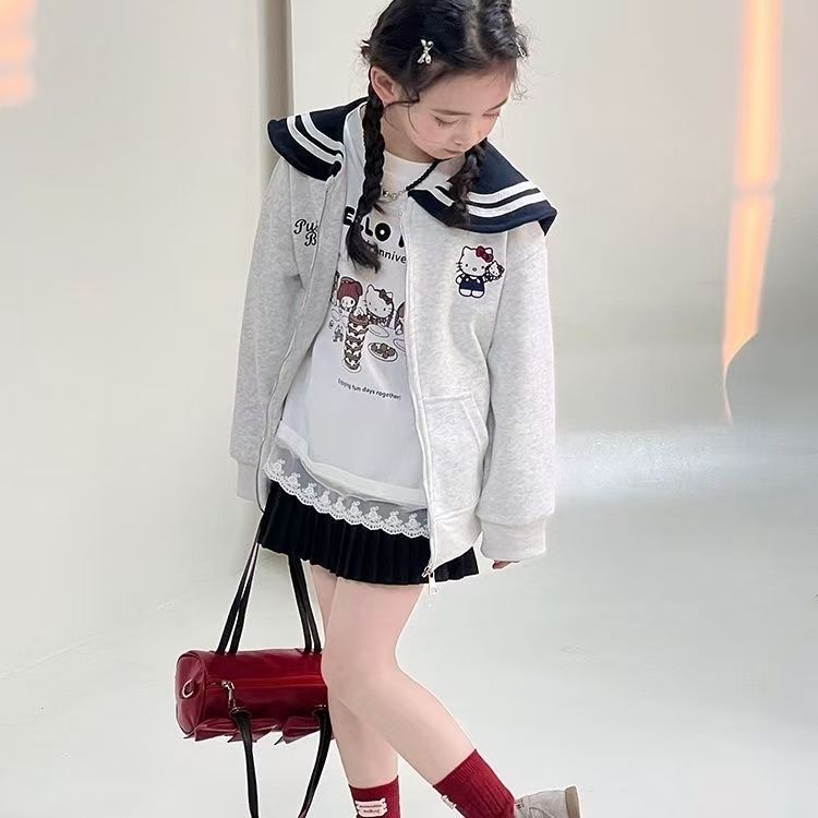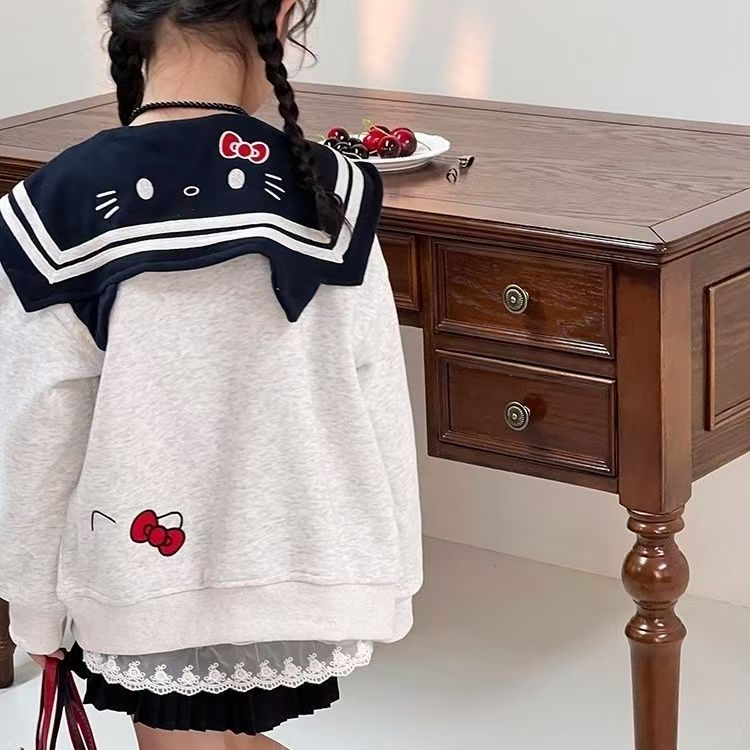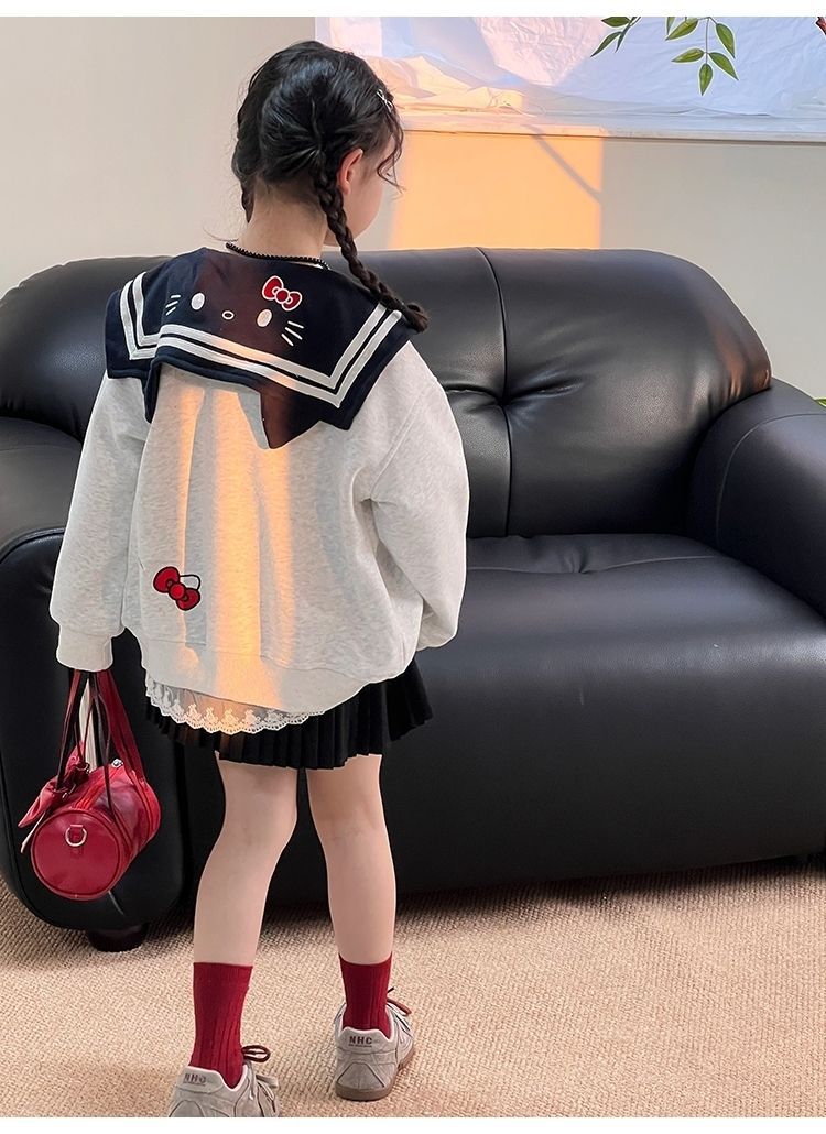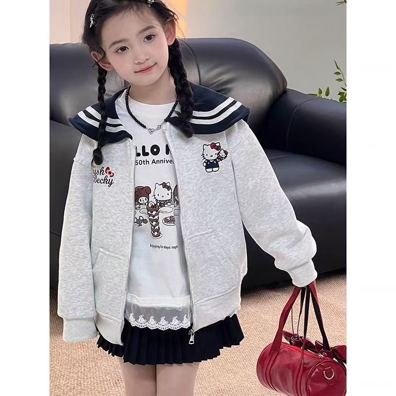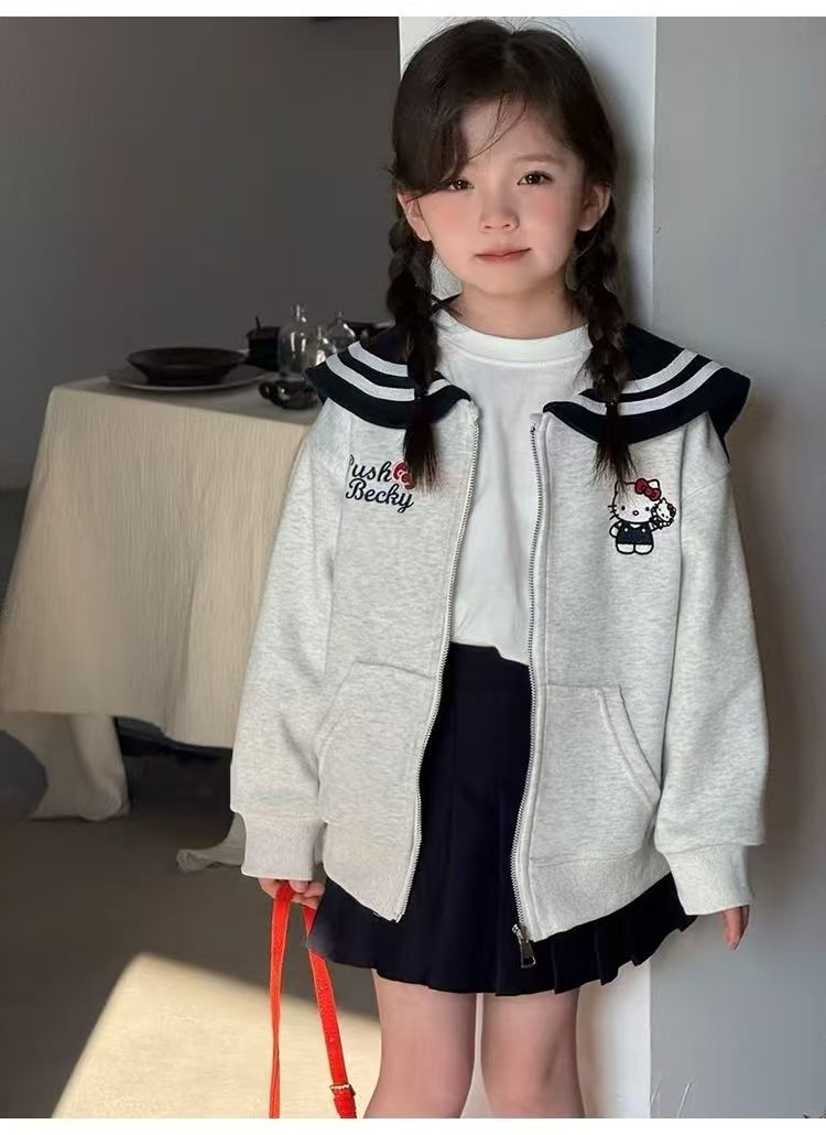 여아 코트 2025 봄 신작 아동 스타일 네이비 칼라 탑 중대형 아동 한국어 버전 만화 긴팔 가디건스토어 가기