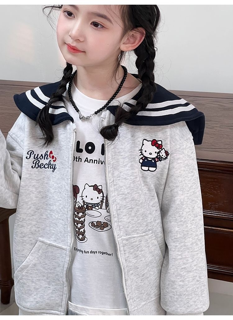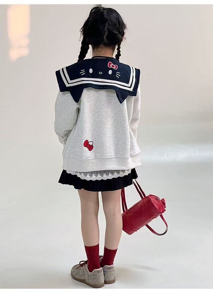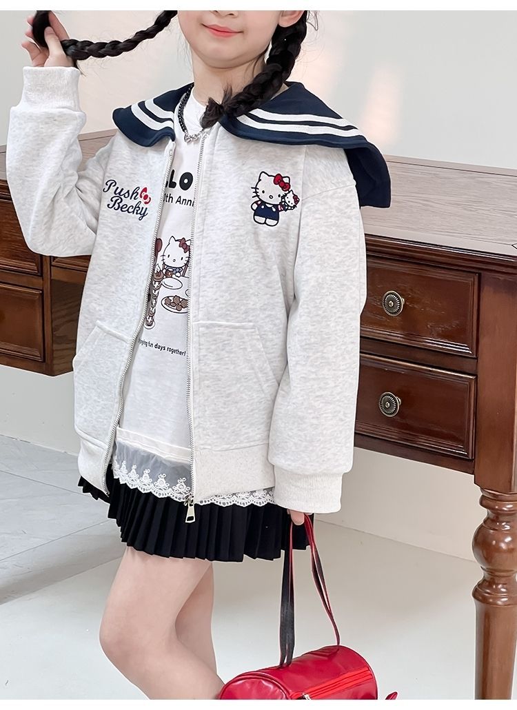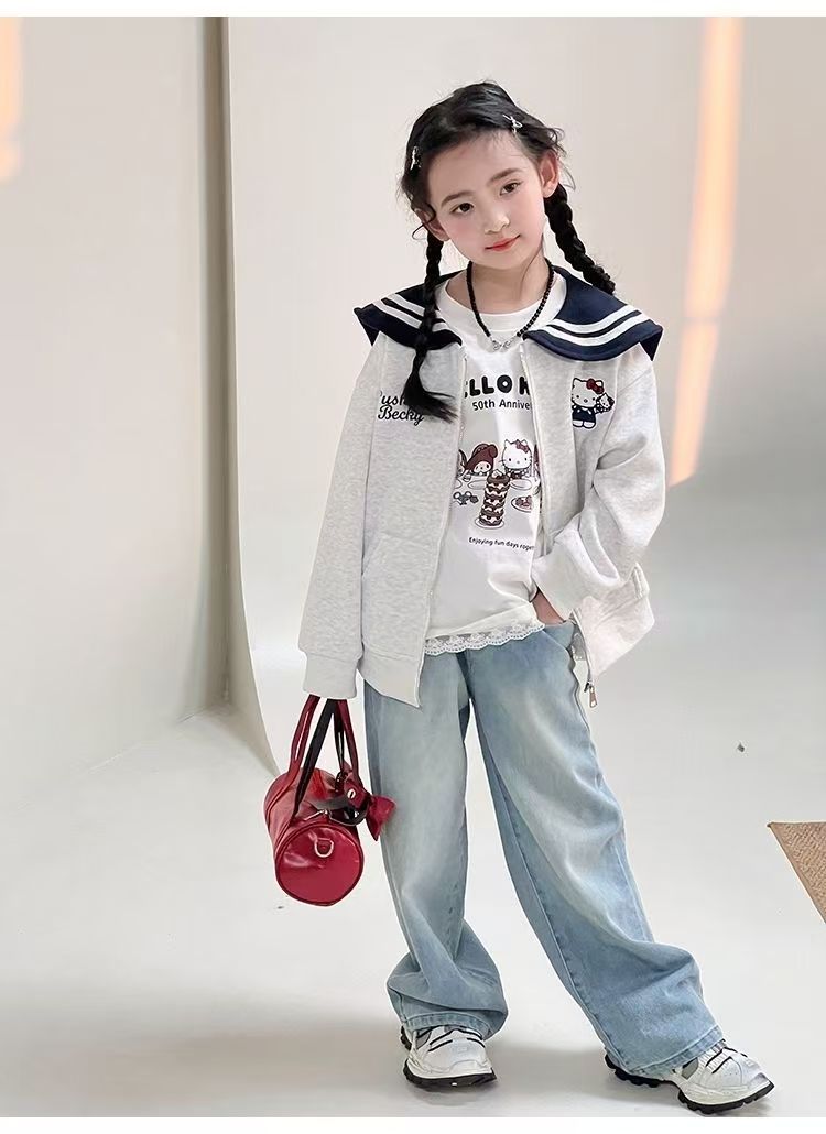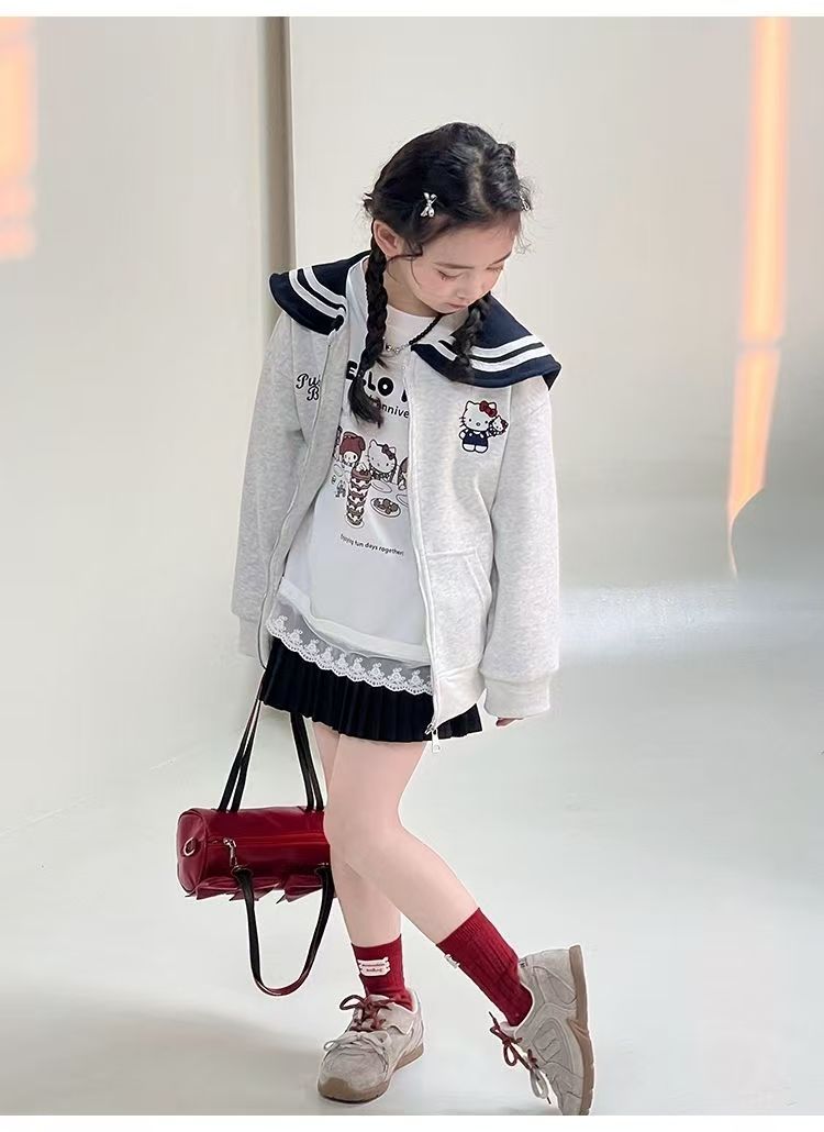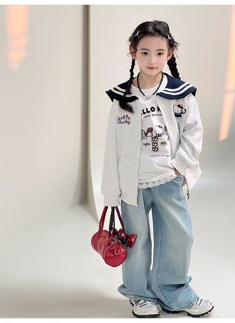 여아 코트 2025 봄 신작 아동 스타일 네이비 칼라 탑 중대형 아동 한국어 버전 만화 긴팔 가디건스토어 가기