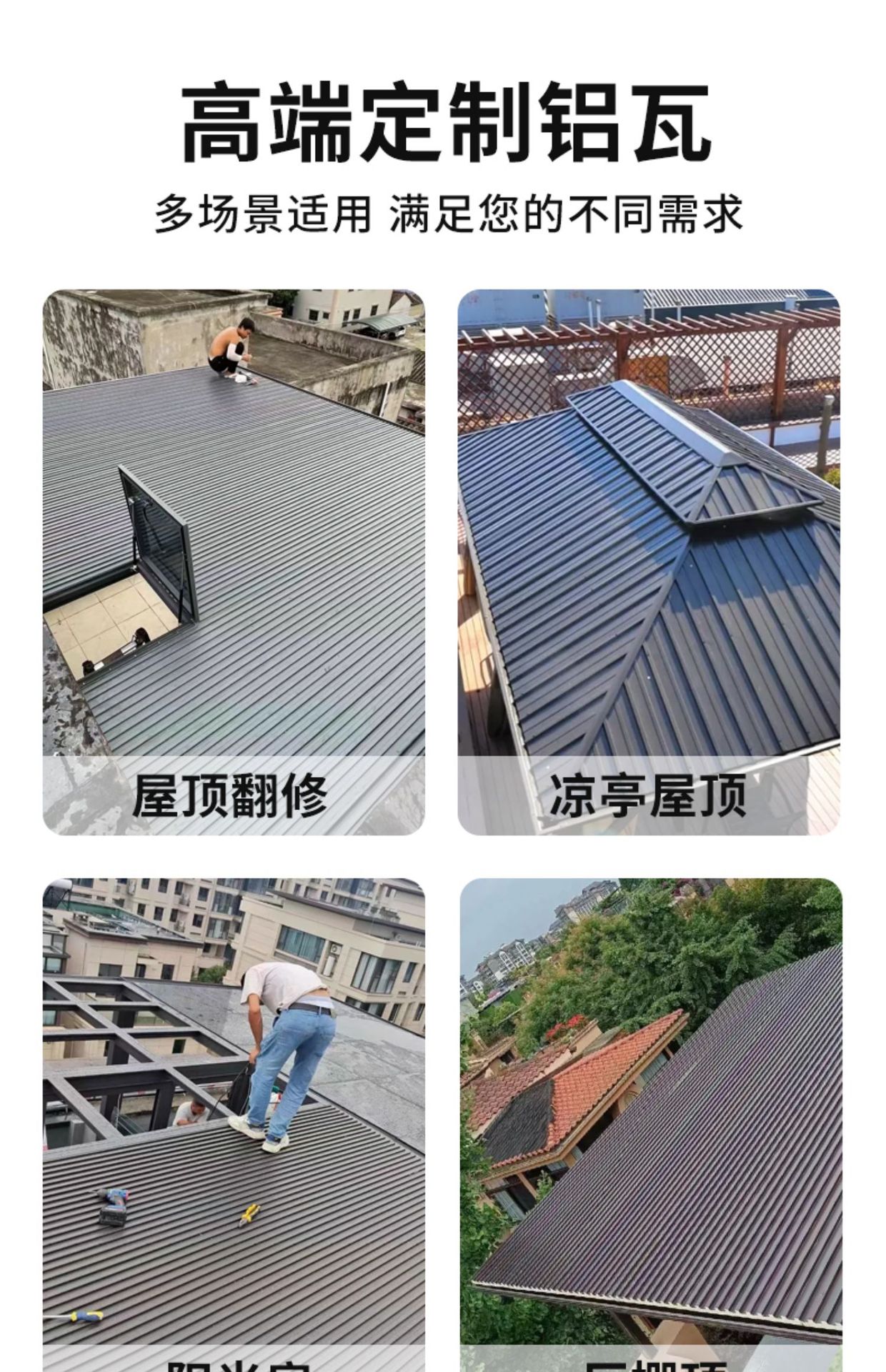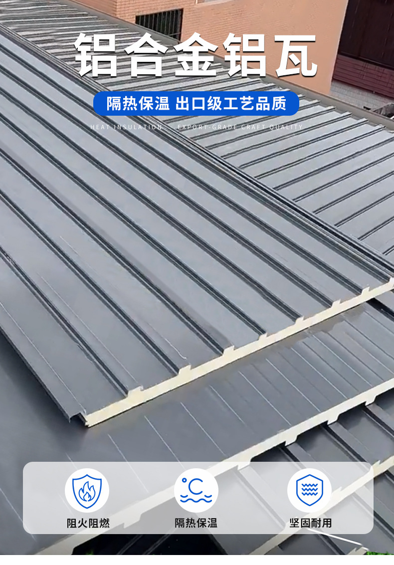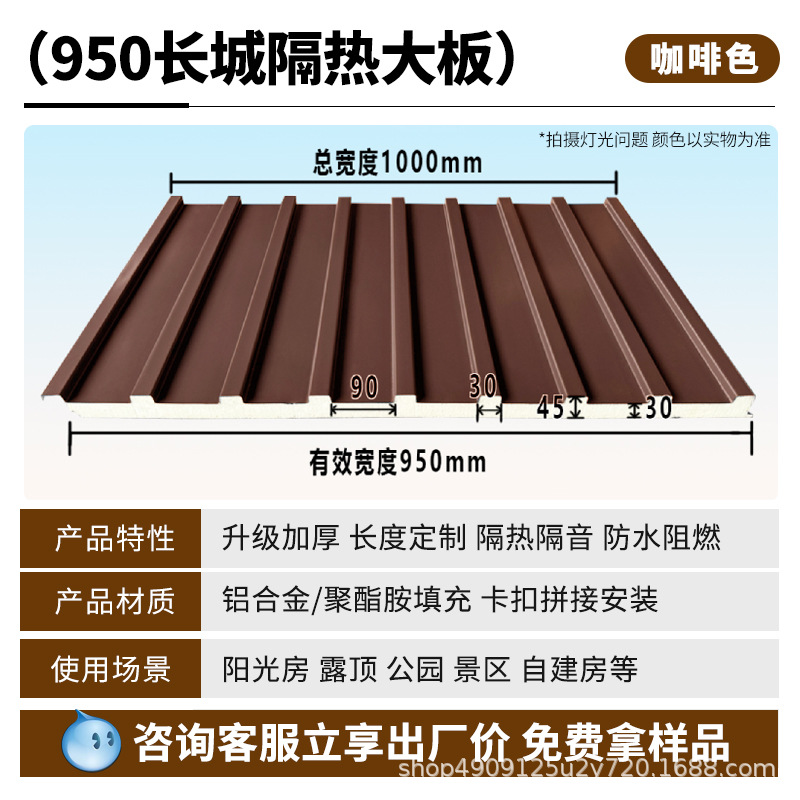 만리장성 단열 알루미늄 타일 대형 플레이트 알루미늄 합금 지붕 타일 캐노피 더블 레이어 폴리 우레탄 지붕 커버 썬 룸 파빌리온
