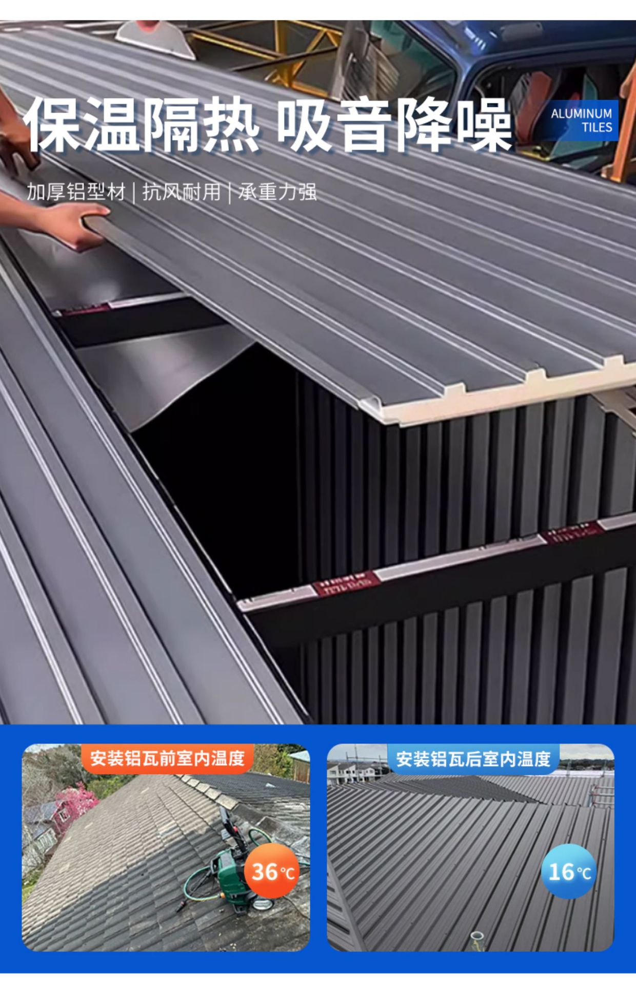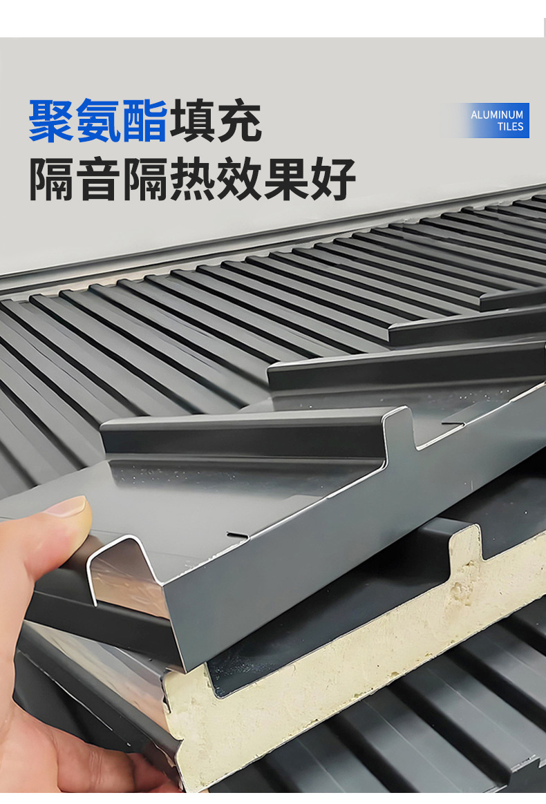 만리장성 단열 알루미늄 타일 대형 플레이트 알루미늄 합금 지붕 타일 캐노피 더블 레이어 폴리 우레탄 지붕 커버 썬 룸 파빌리온스토어 가기