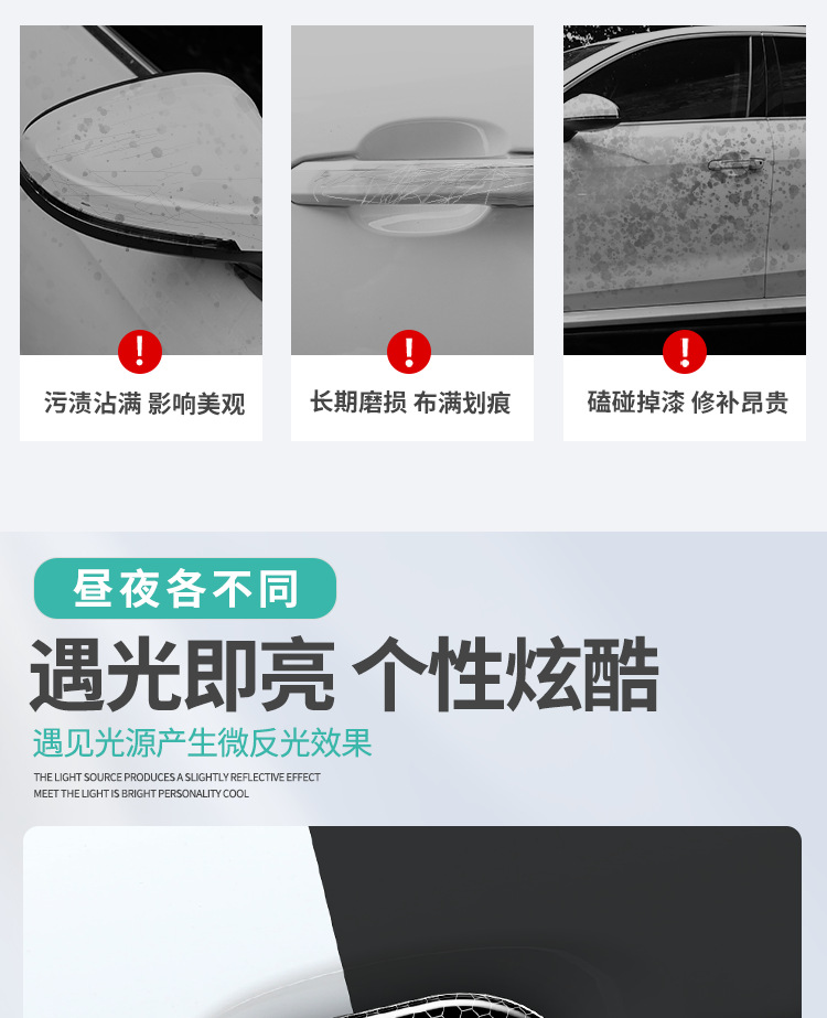 자동차 도어 보울 스티커 자동차 도어 충돌 방지 스트립 반사 스티커 안티 스크래치 페인트 프리즘 보호 필름 안티 스크래치 블랙 접착제