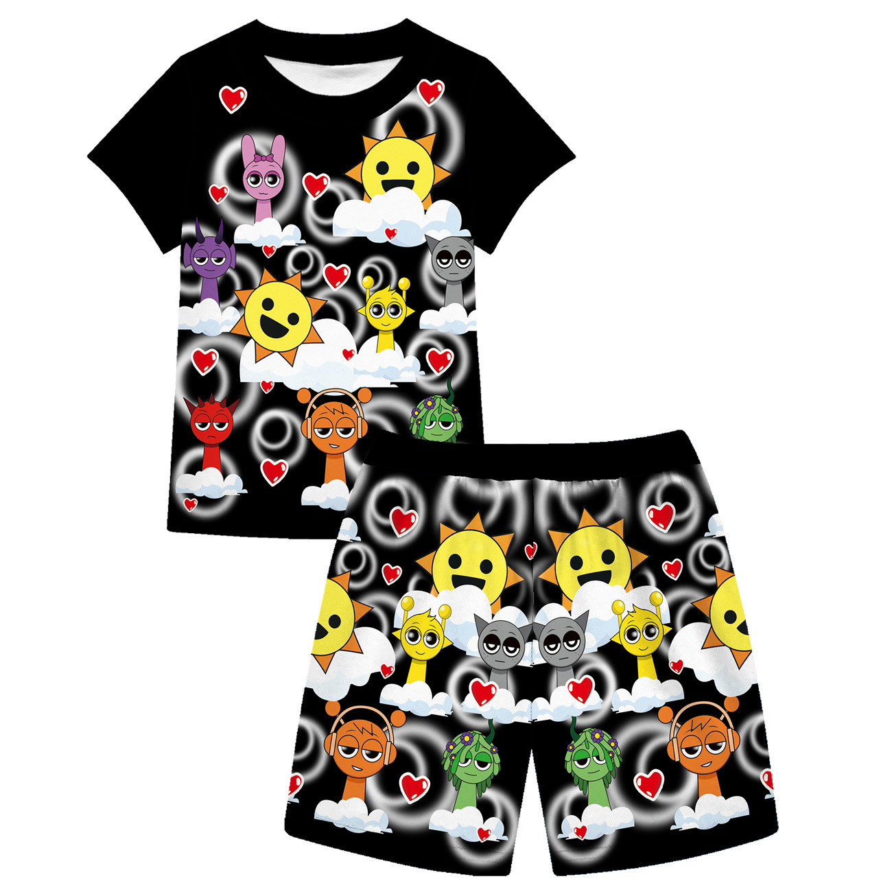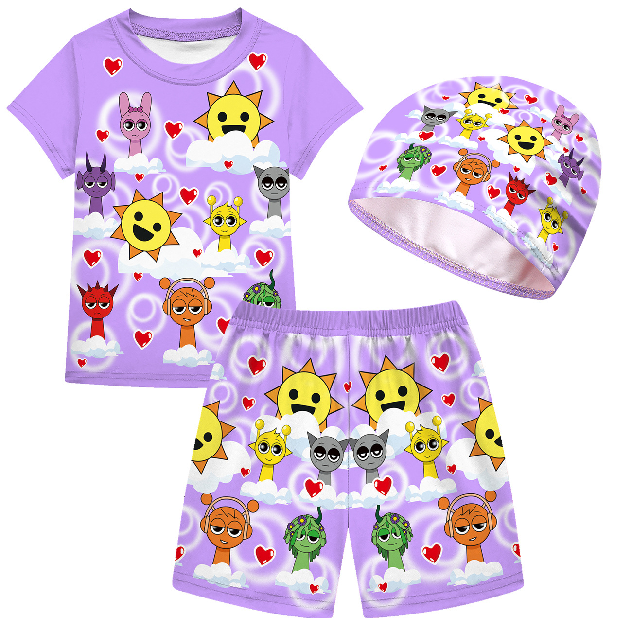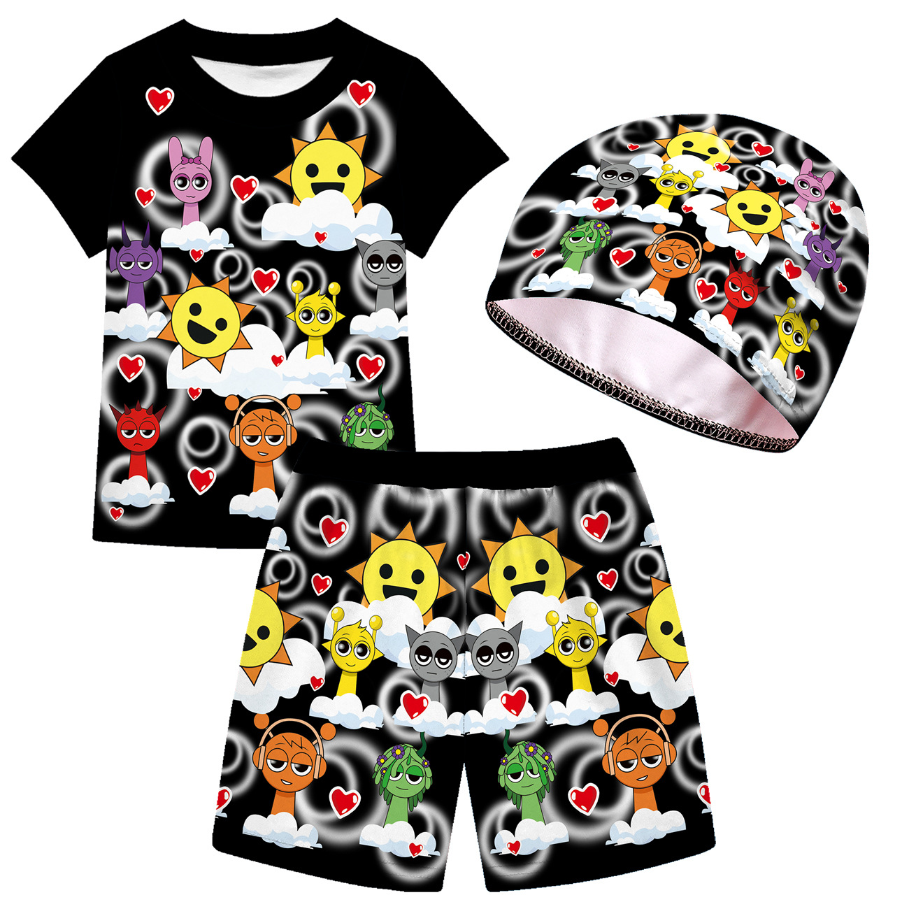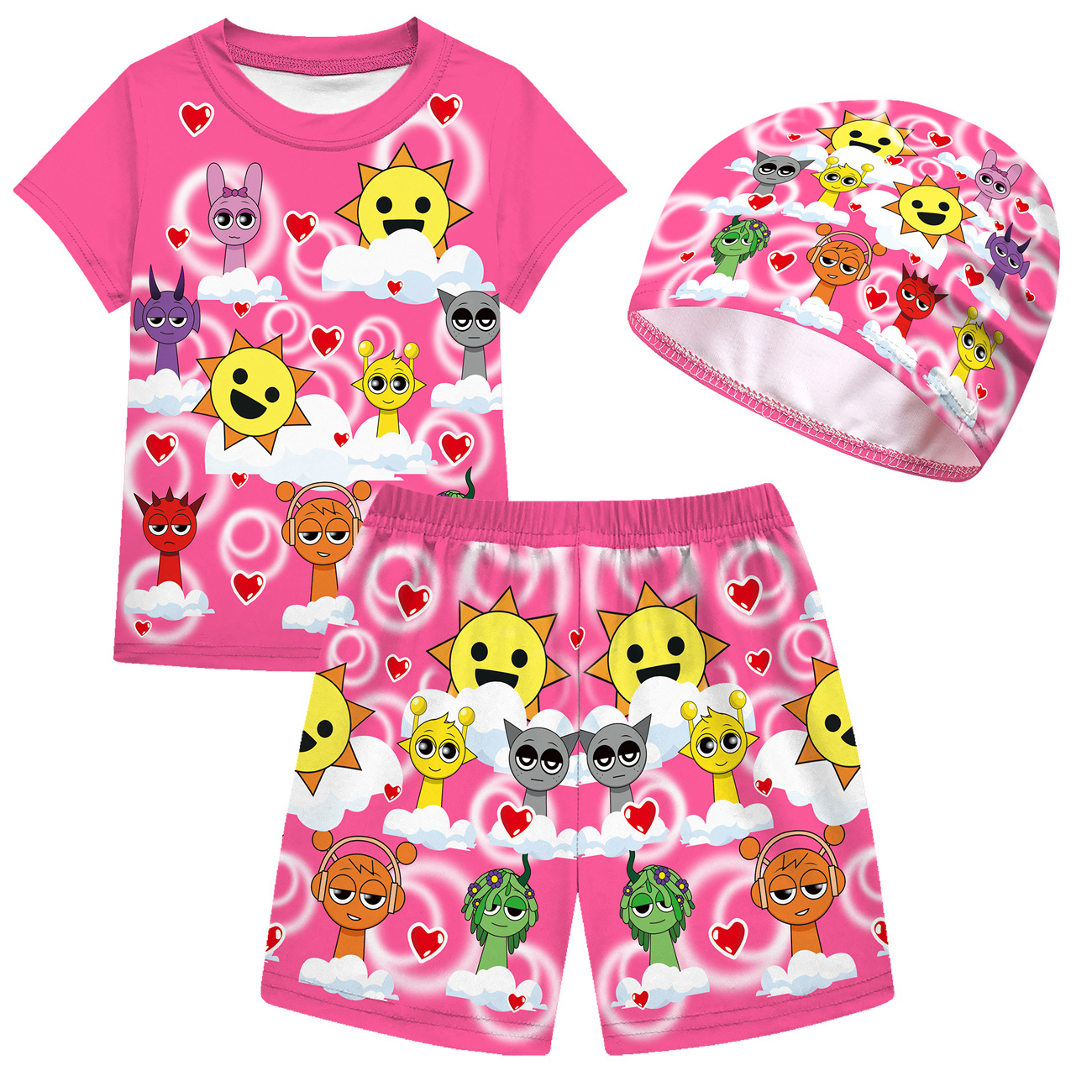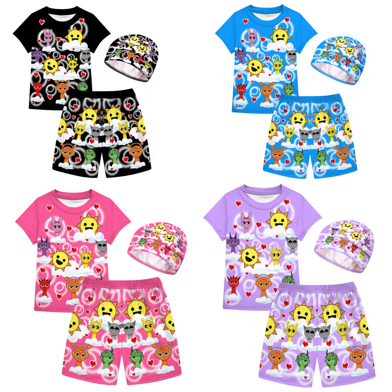 어린이 반팔 반바지 세트 수영복 소년과 소녀 수영복 3 피스 세트 어린이 수영복 수영 트렁크 수영 모자 20608