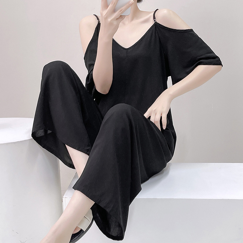 여름 여성용 오프숄더 잠옷, 고급 단색 면 실크 홈웨어 세트, 야외에서 착용 가능, 캐주얼 투피스 얇은 슈트