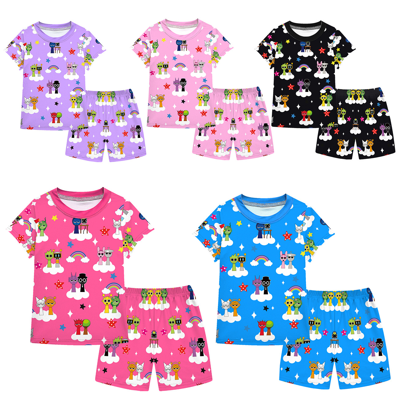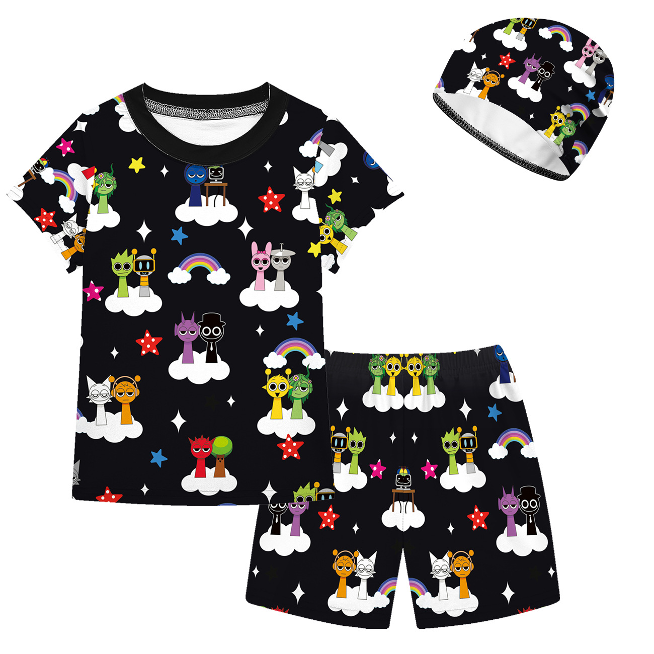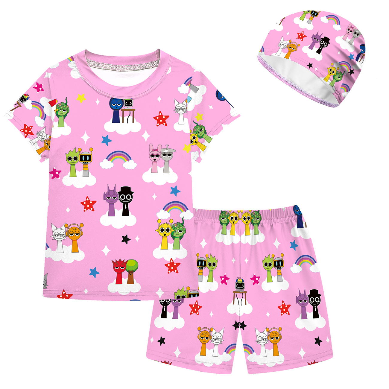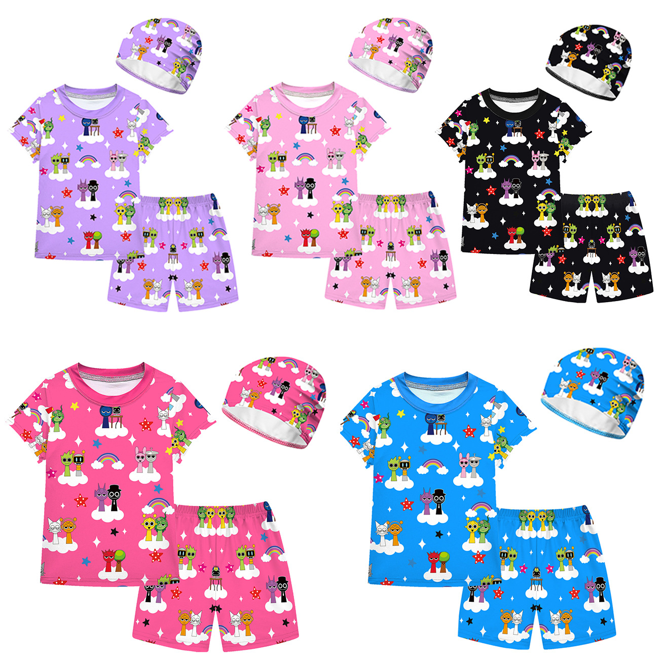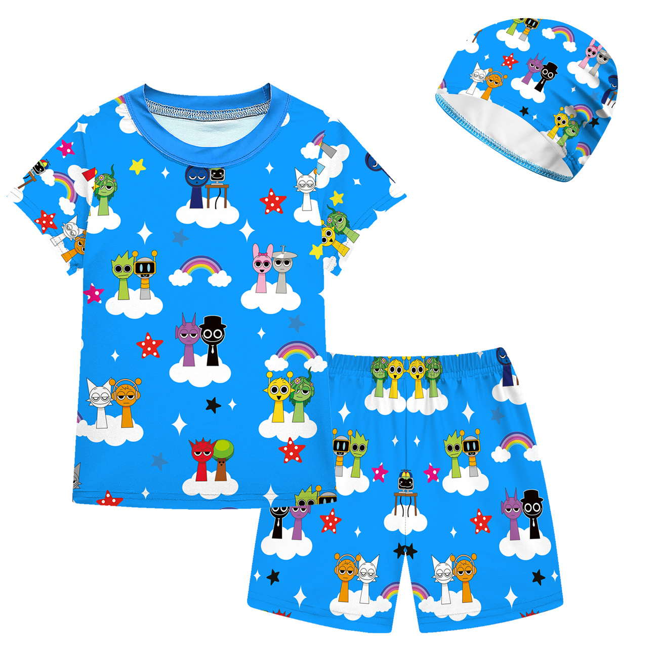 어린이 반팔 반바지 정장 수영복 소년과 소녀 수영복 3 피스 세트 어린이 수영복 수영 트렁크 수영 모자 20605