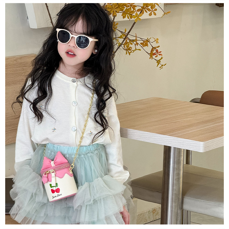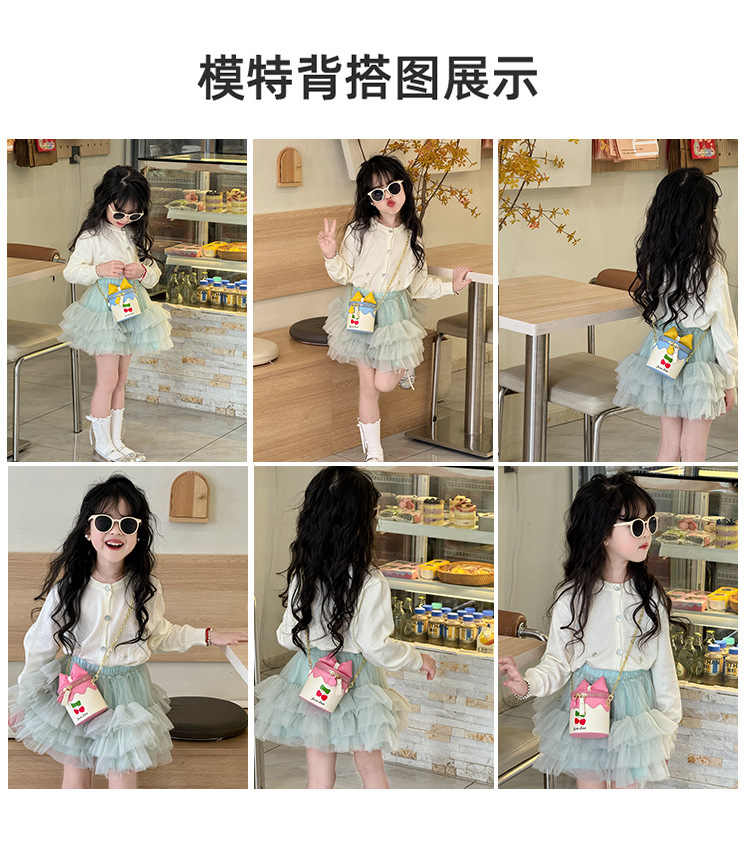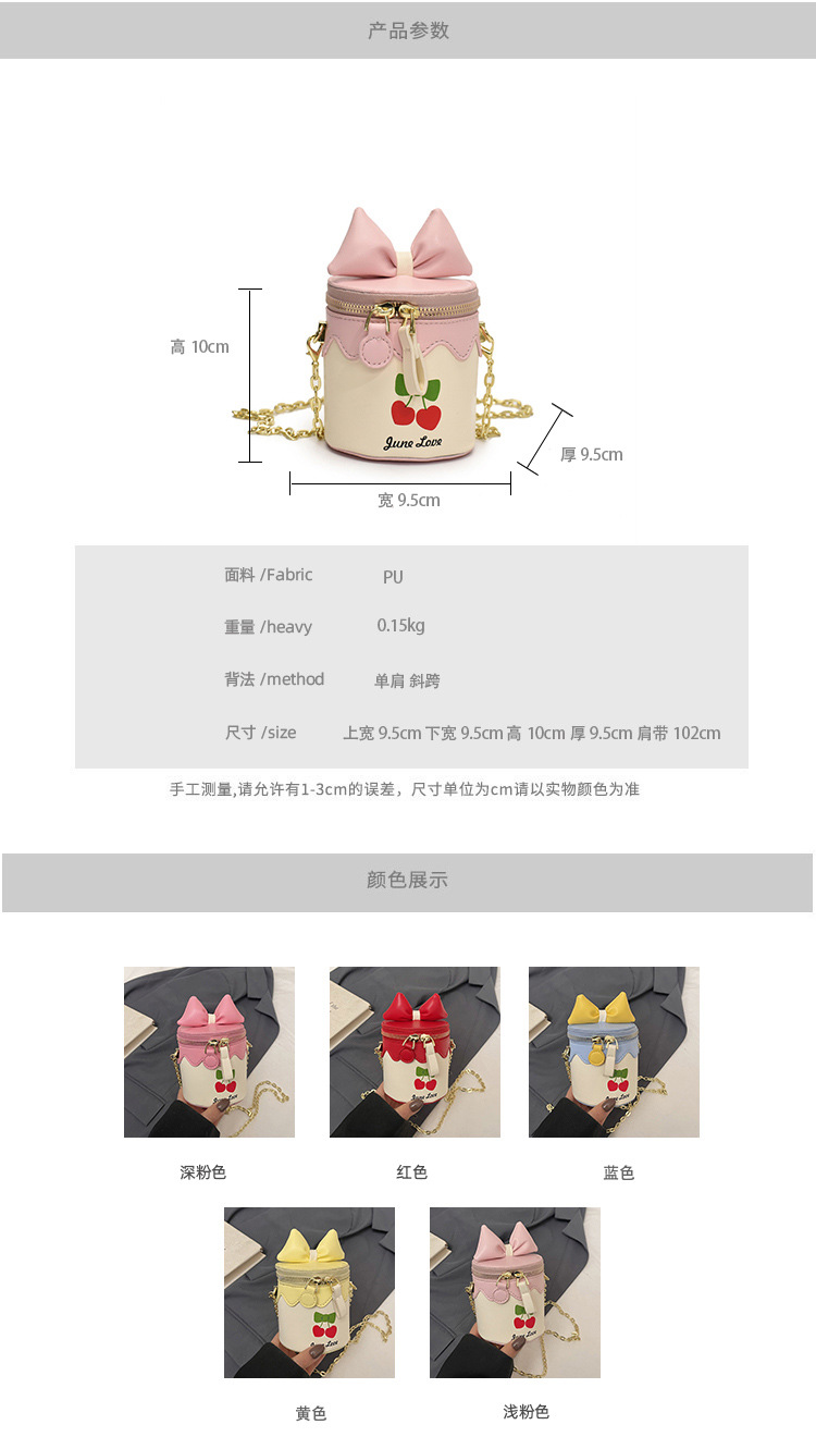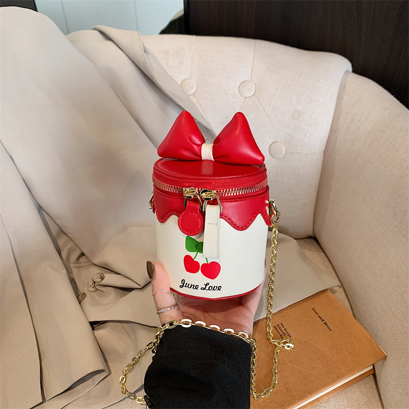 나비 매듭 어린이 동전 지갑 25 새로운 한국어 스타일 하이 엔드 만화 공주 가방 체리 버킷 가방 소녀 크로스 바디 백