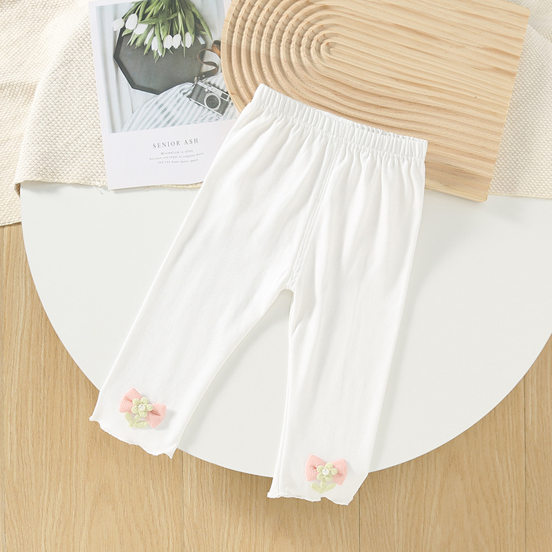 여자 자른 바지 여름 얇은 아이스 실크 어린이 바지 여자 캐주얼 반바지 여름 착용 아기의 순면 레깅스