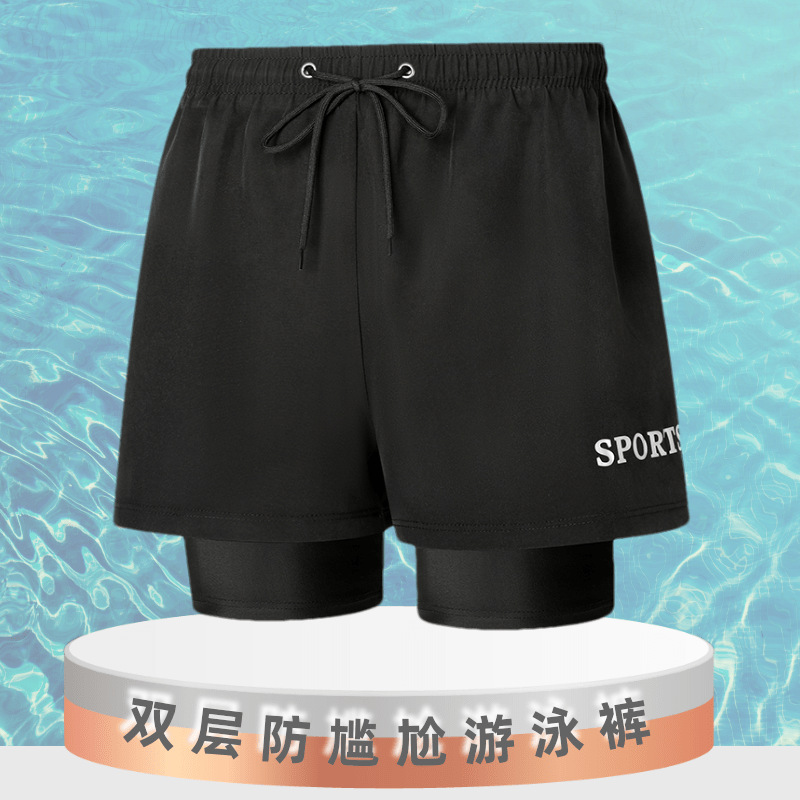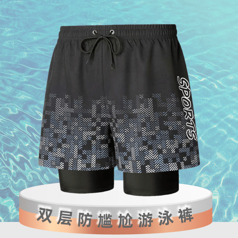 수영 트렁크 남자의 새로운 빠른 건조 더블 레이어 방황 플러스 사이즈 느슨한 인쇄 성인 수영 트렁크 전문 남성 수영복스토어 가기