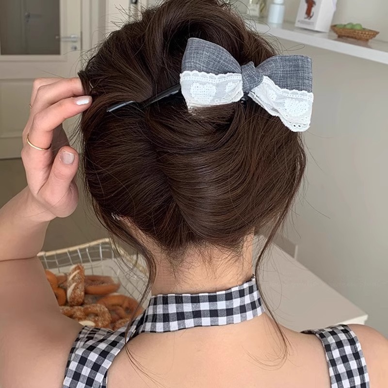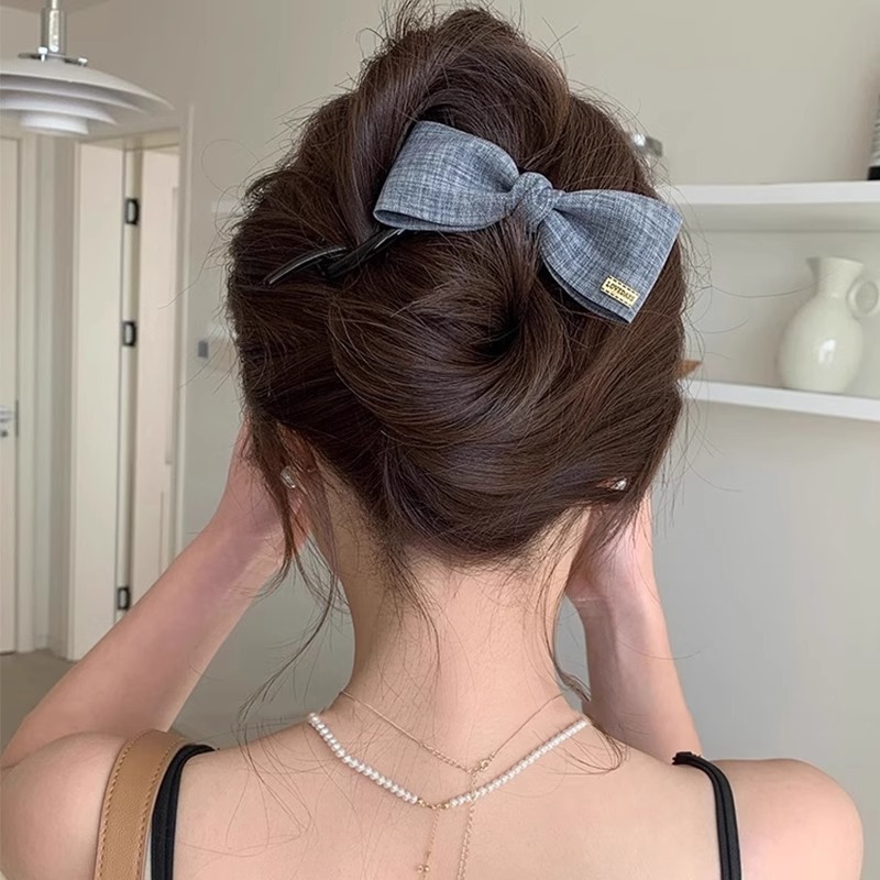 회색 회색 편지 활 트위스트 클립 2025 새로운 고급 잡아 클립 뒤로 머리 클립 헤어 액세서리 여성