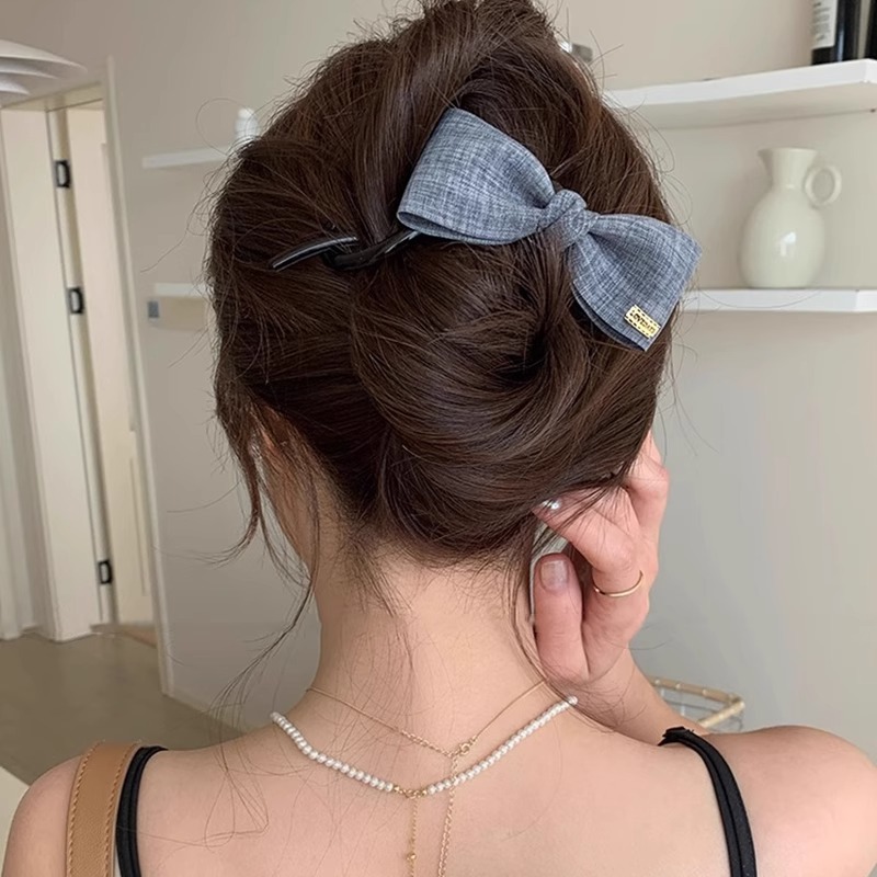 회색 회색 편지 활 트위스트 클립 2025 새로운 고급 잡아 클립 뒤로 머리 클립 헤어 액세서리 여성스토어 가기