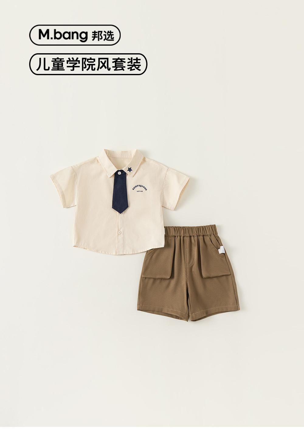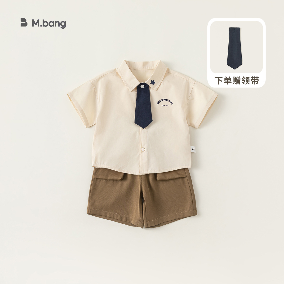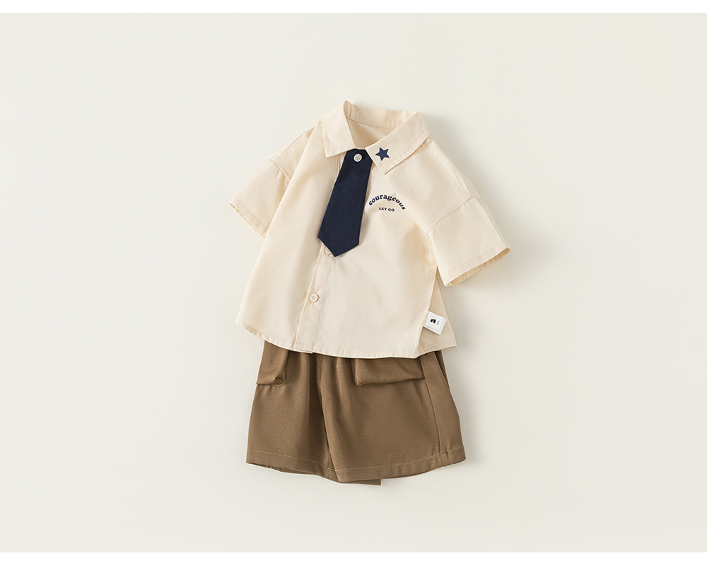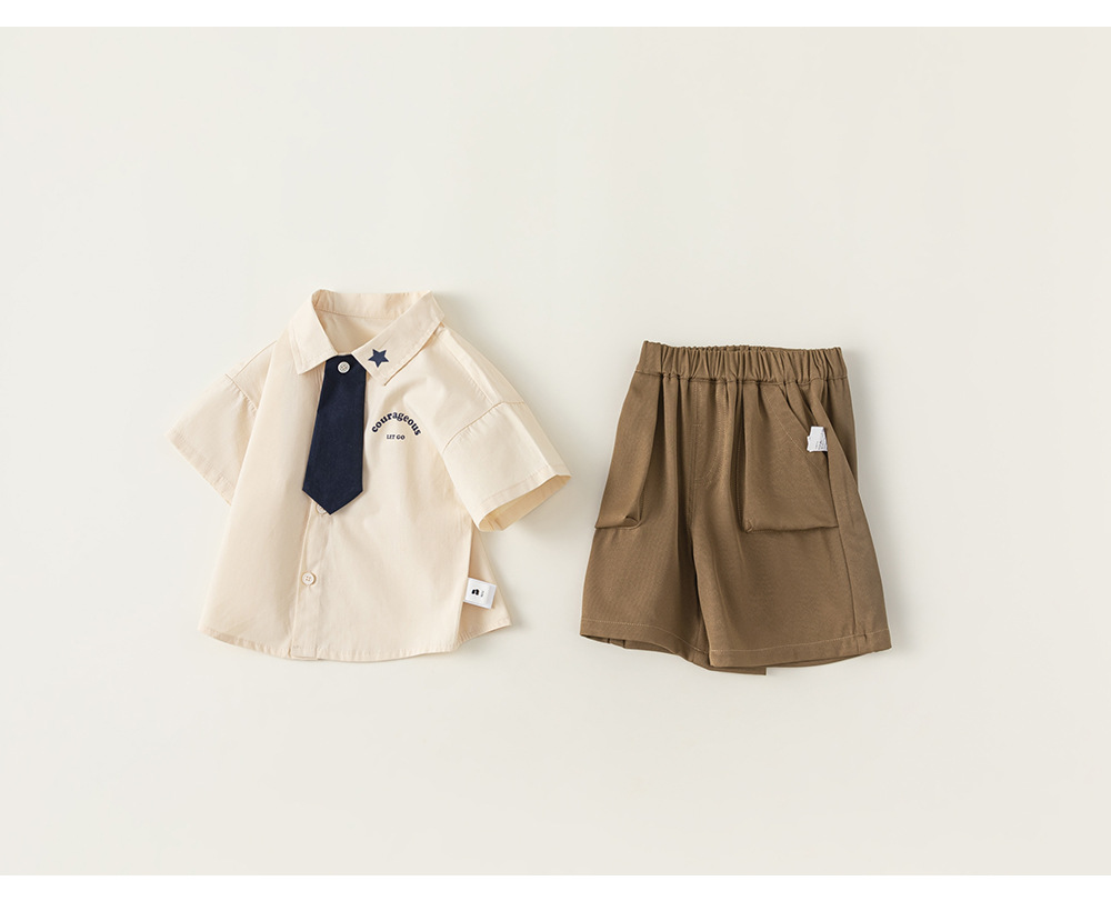 봉, 2025 년 여름 원피스 소년 셔츠 넥타이 솔리드 컬러 미디엄 팬츠 2 피스 퍼포먼스 원피스 소년 아기 유치원 정원 원피스 선정