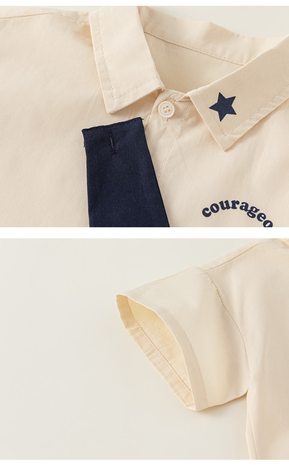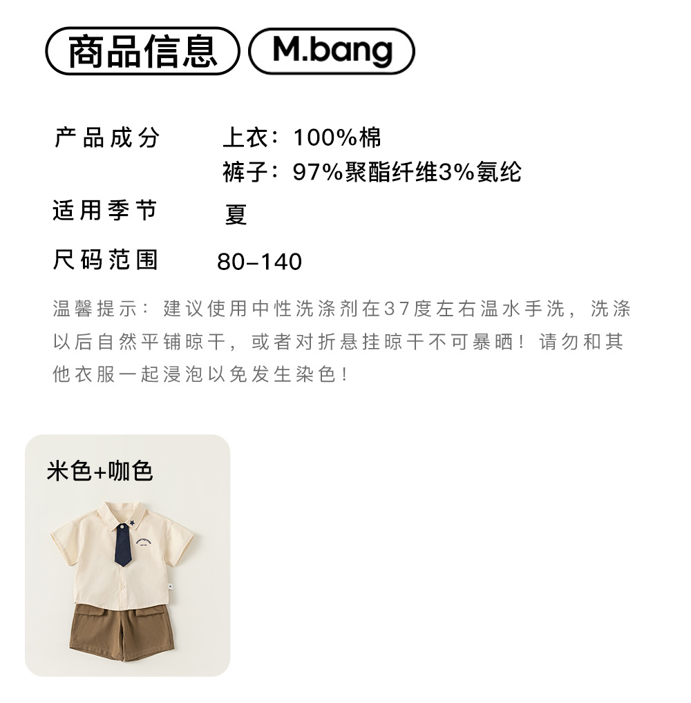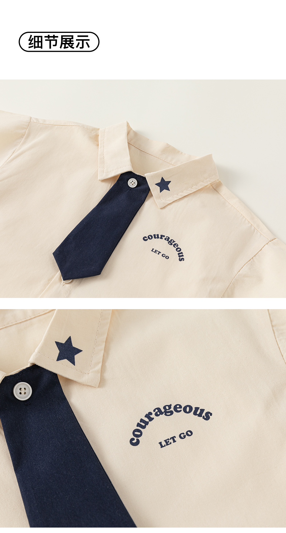 봉, 2025 년 여름 원피스 소년 셔츠 넥타이 솔리드 컬러 미디엄 팬츠 2 피스 퍼포먼스 원피스 소년 아기 유치원 정원 원피스 선정스토어 가기