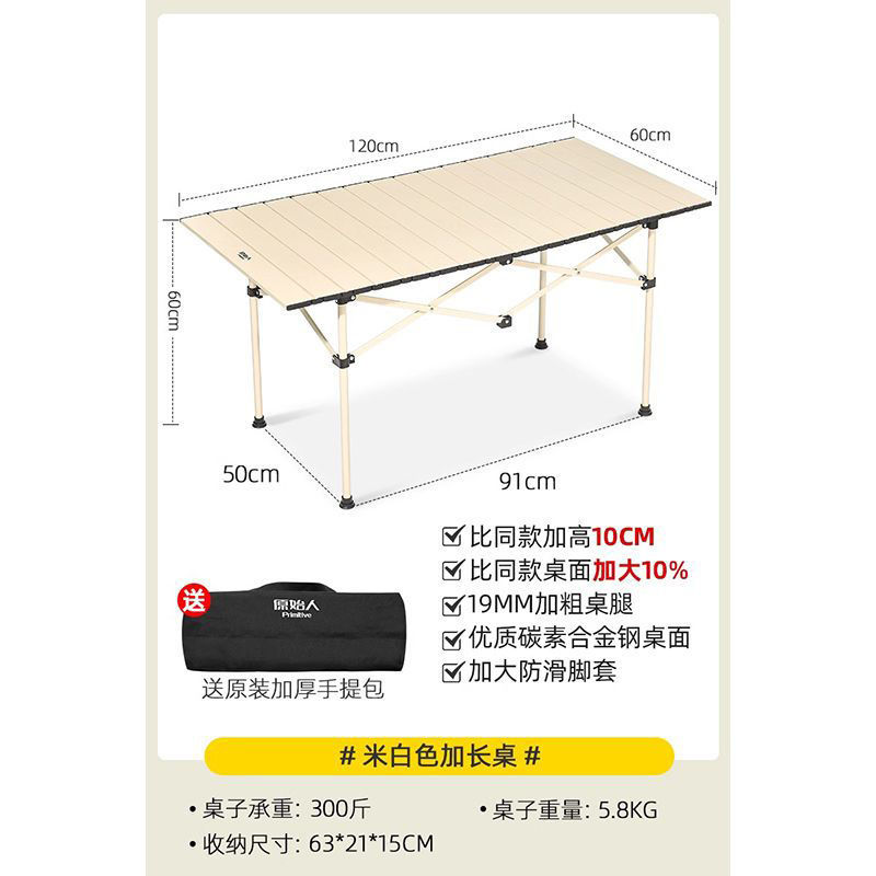 • [오프화이트] 두꺼운 탄소강 소재 (수납가방 포함) - 높이 96cm 긴 테이블 [4~6인용]