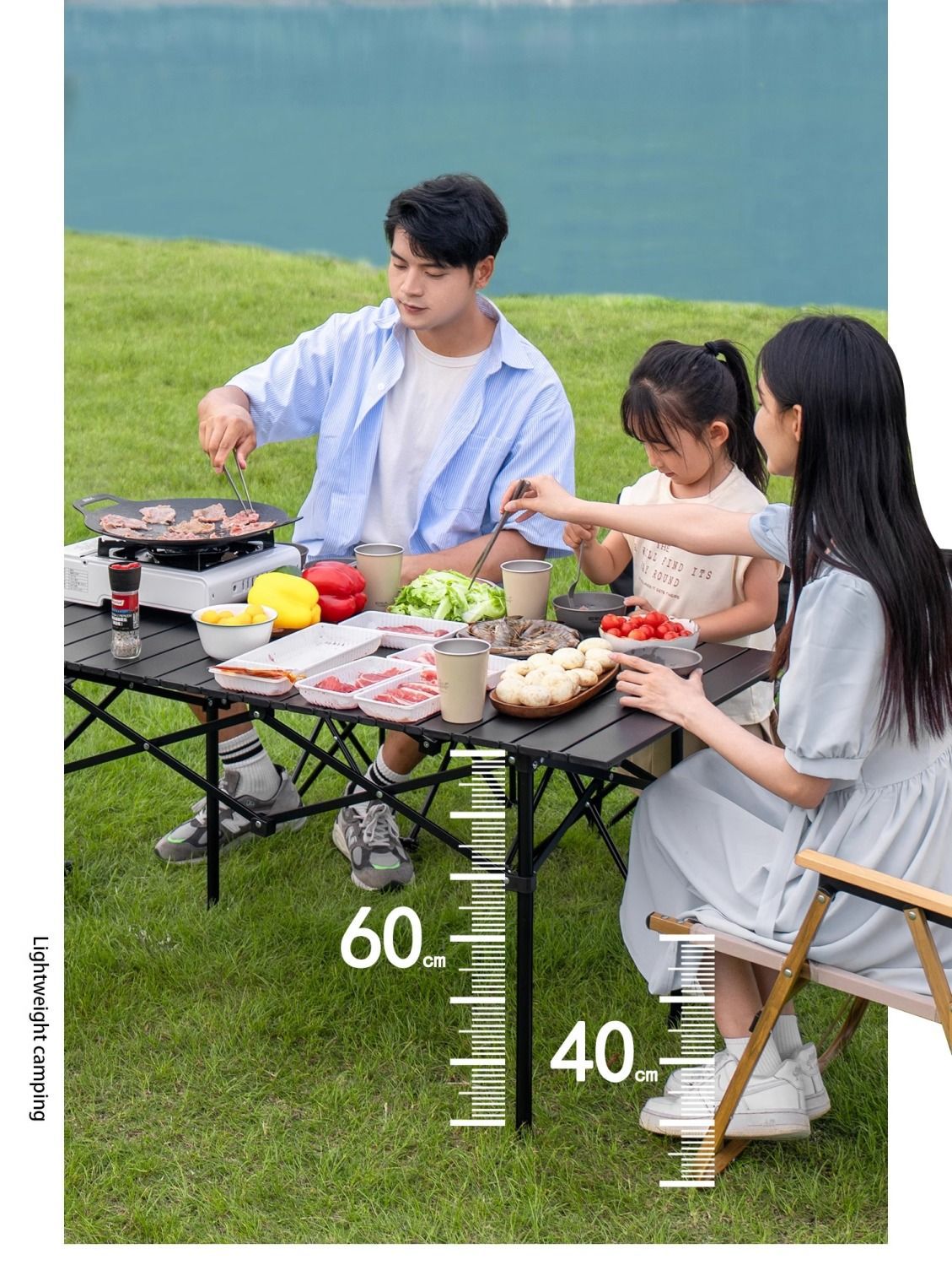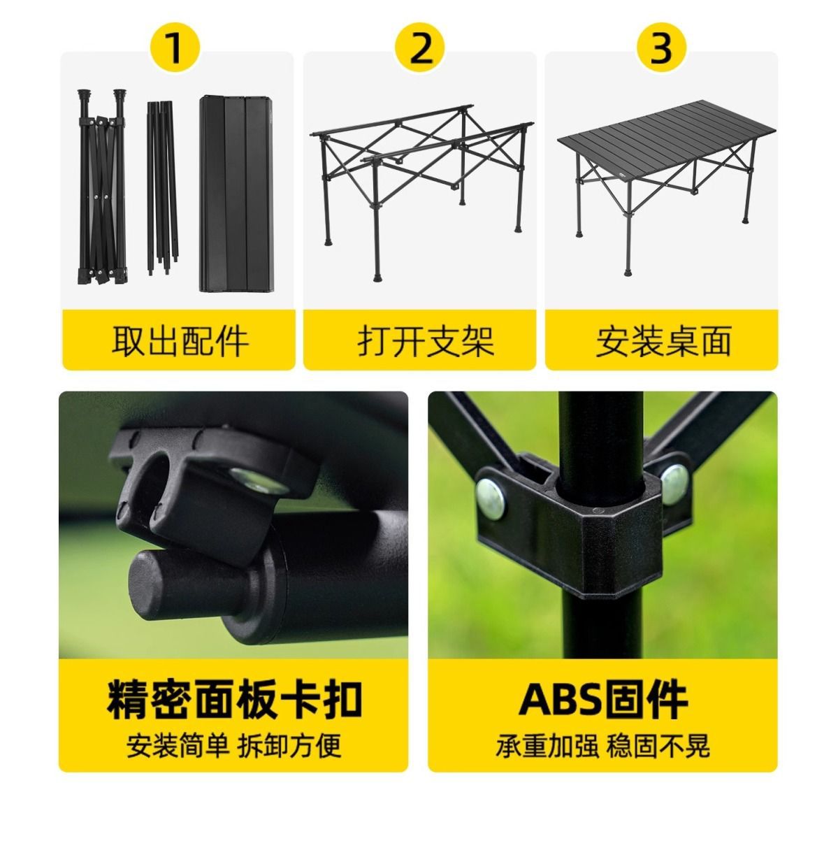 • [흑요석 블랙] 두꺼운 탄소강 소재(수납 가방 포함) - 높이 96cm 긴 테이블 + 대형 의자*2