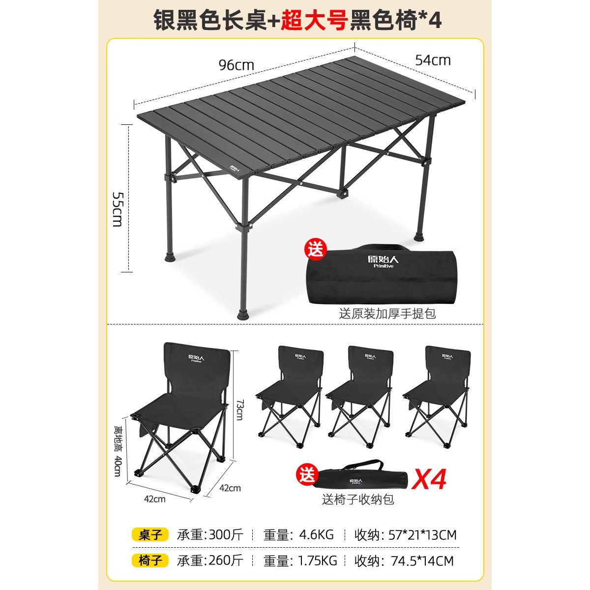 • [흑요석 블랙] 두꺼운 탄소강 소재 (수납 가방 포함) - 높이 96cm 긴 테이블 + 대형 의자 * 4 [패키지 세트]