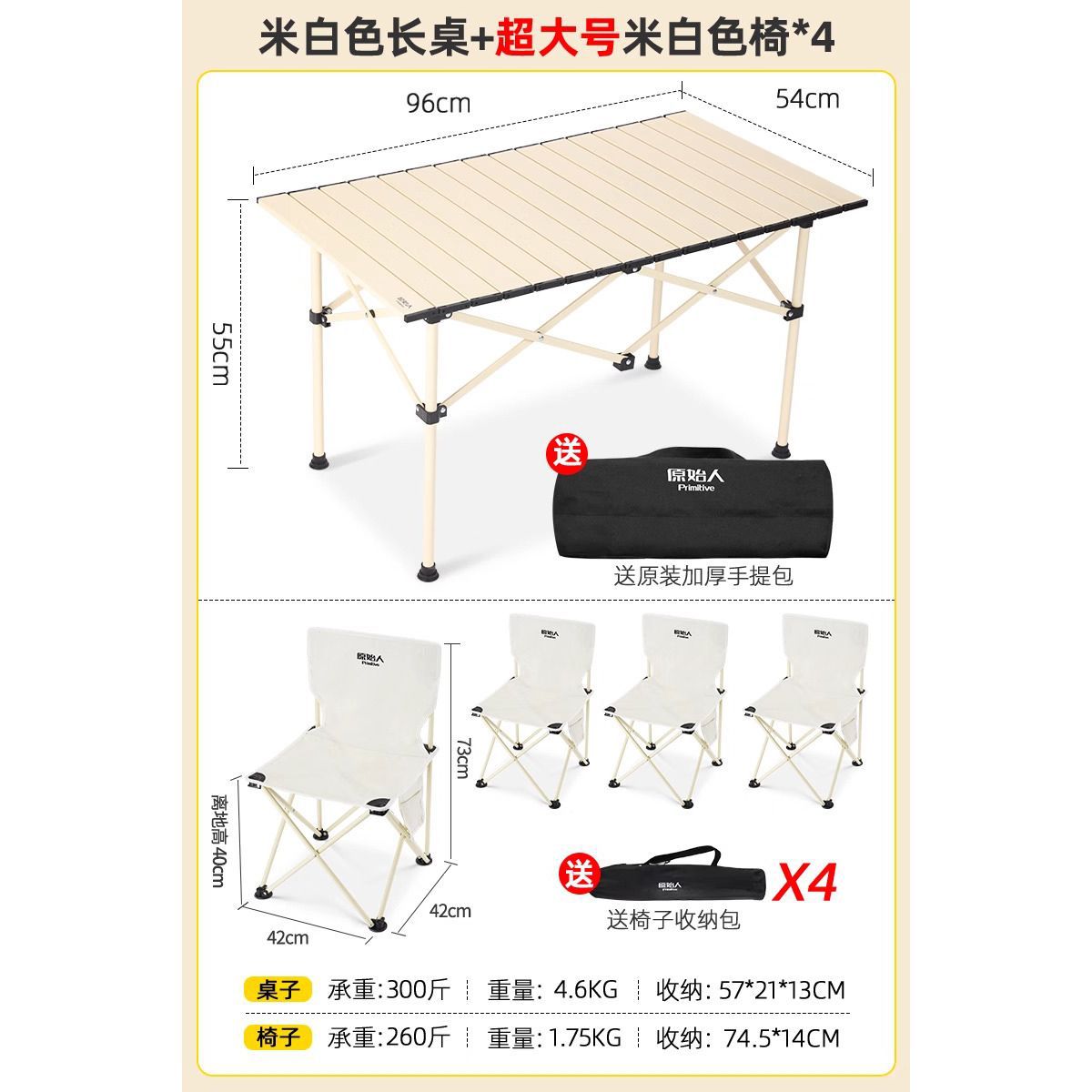 • [오프화이트] 두꺼운 탄소강 소재 (수납가방 포함) - 높이 96cm 긴 테이블 + 특대형 의자*4 [세트 패키지]