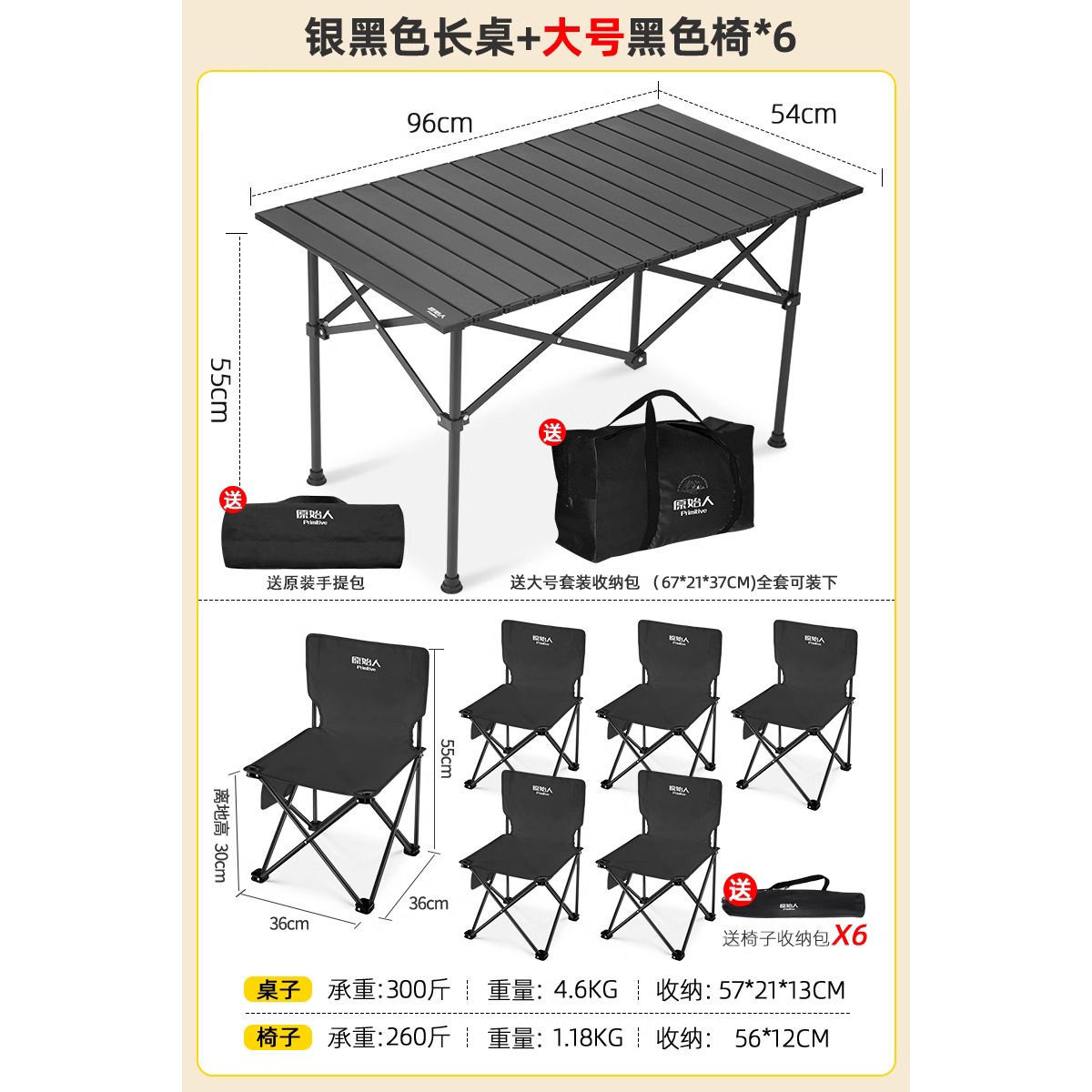 • [흑요석 블랙] 두꺼운 탄소강 소재 (수납 가방 포함) - 높이 96cm 긴 테이블 + 대형 의자 * 6 [패키지 세트]