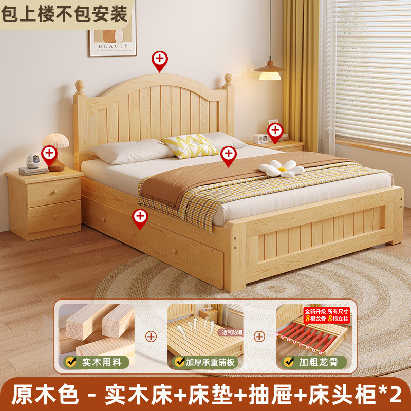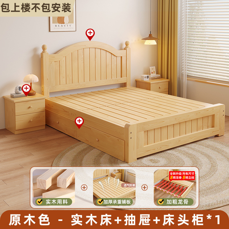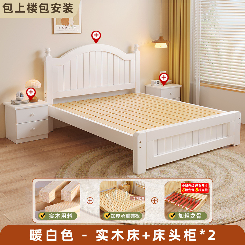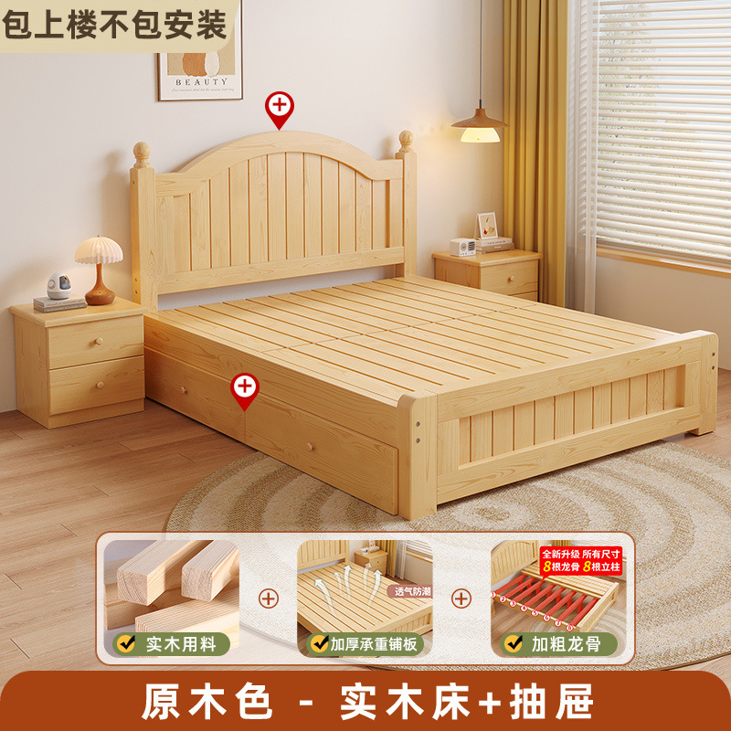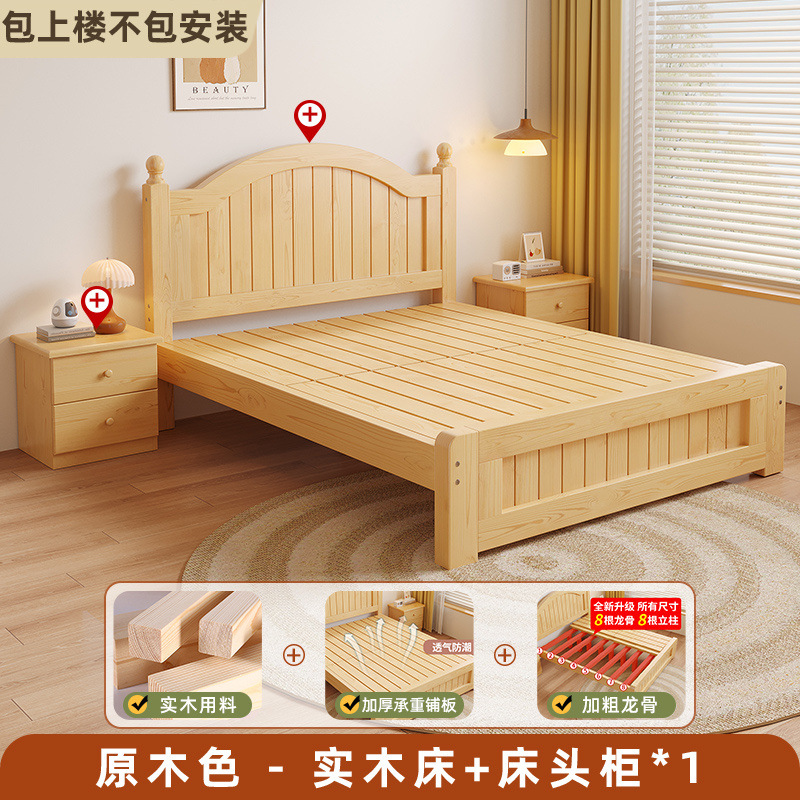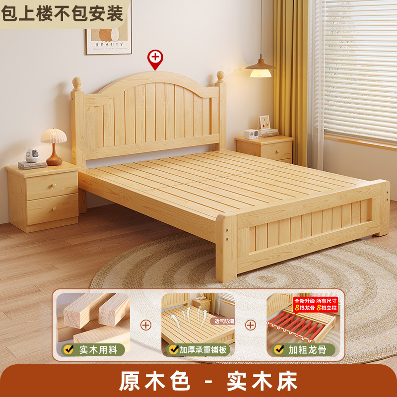 단단한 나무 침대 현대 간단한 가구 1.8 m 퀸 침대 더블 침대 렌탈 룸 경제적 인 1m1.5 m 싱글 침대 프레임스토어 가기