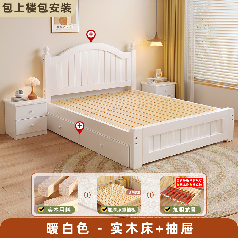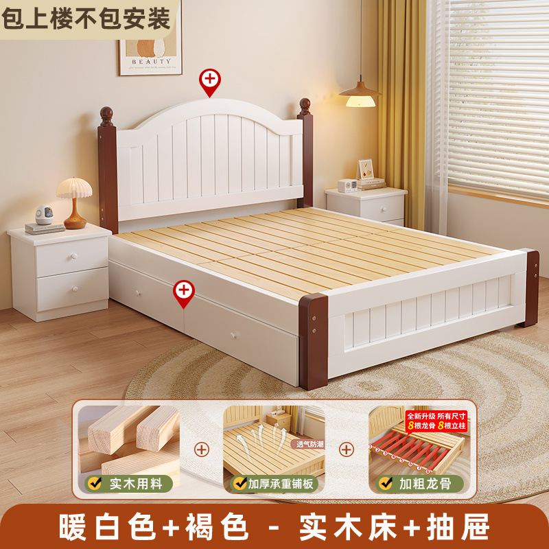 단단한 나무 침대 현대 간단한 가구 1.8 m 퀸 침대 더블 침대 렌탈 룸 경제적 인 1m1.5 m 싱글 침대 프레임