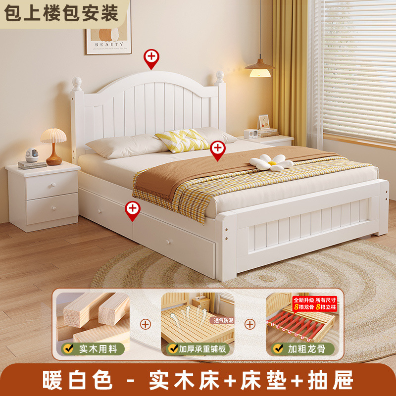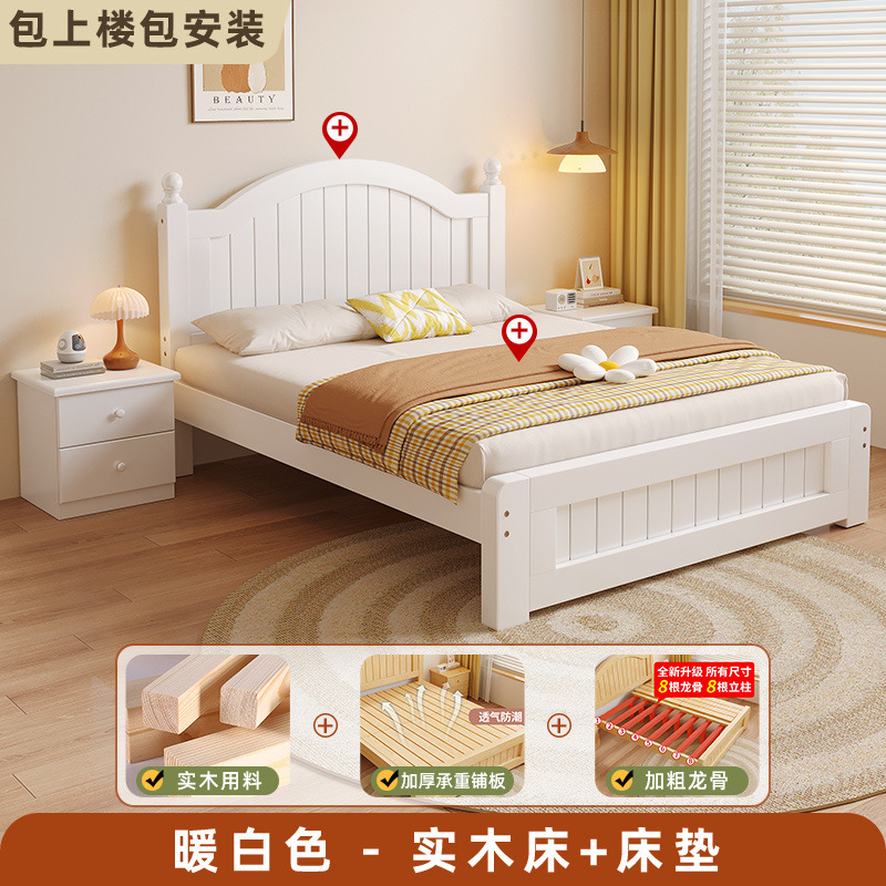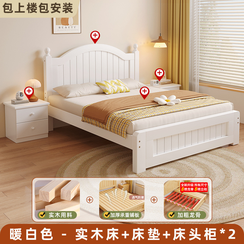 • 올 화이트 고급 침대 + 매트리스 + 침대 옆 테이블 * 1 [위층 포함]