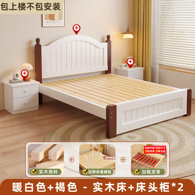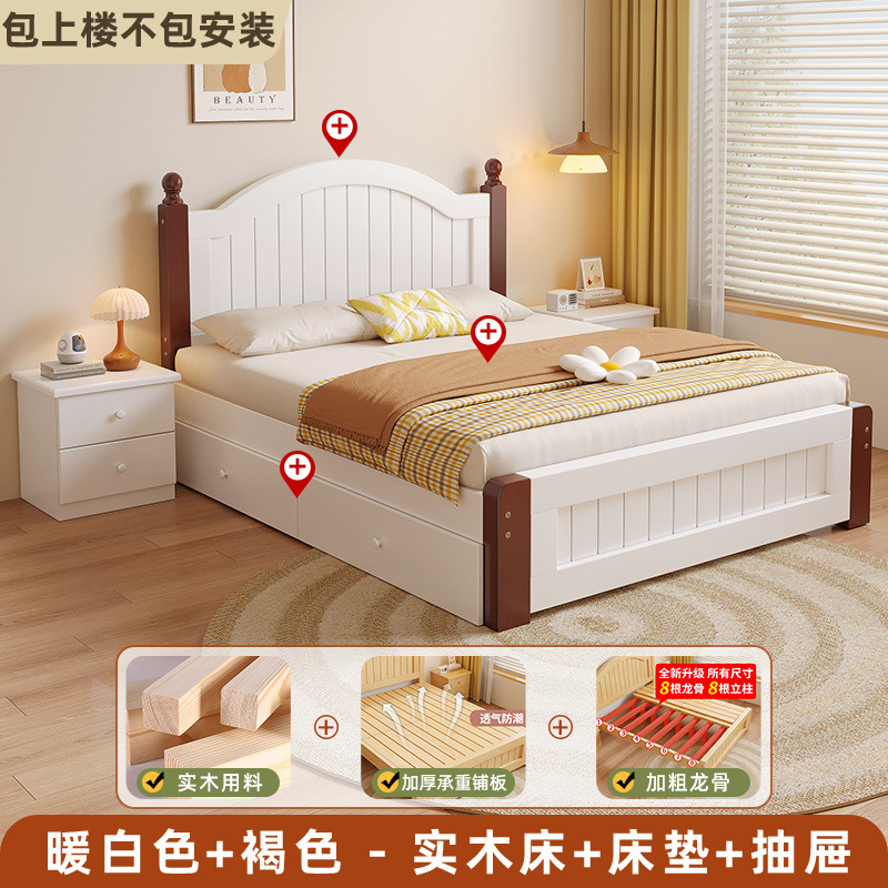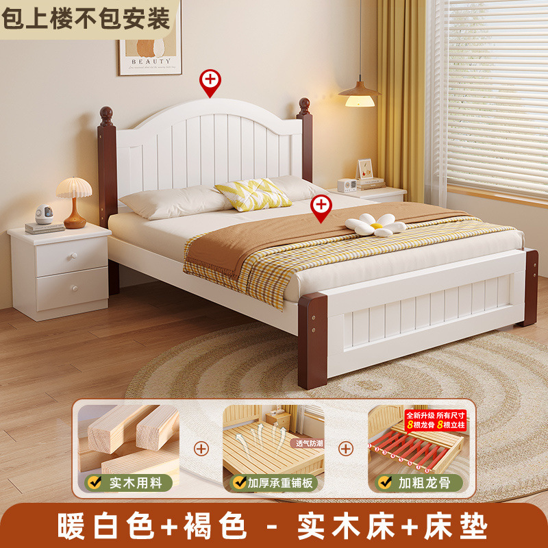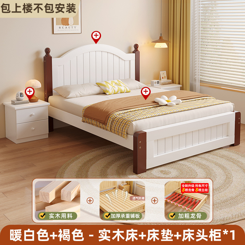 • 화이트 브라운 고급 침대 + 매트리스 + 침대 옆 테이블 * 1 [위층 포함]