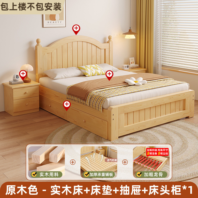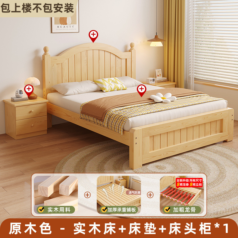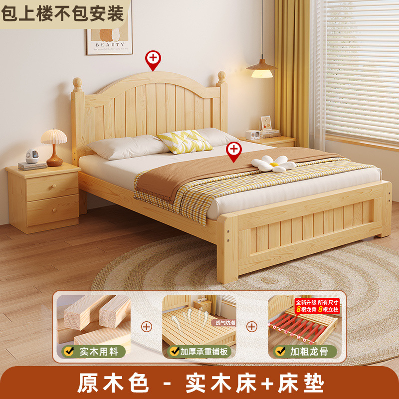 • 통나무 고급 침대 + 매트리스 + 침대 옆 테이블 2 [위층 포함]