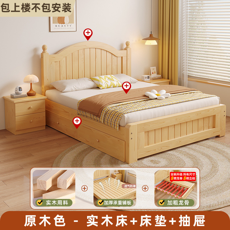 • 통나무 고급 침대 + 매트리스 + 서랍장 [위층 포함]