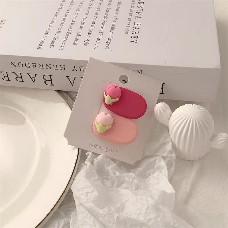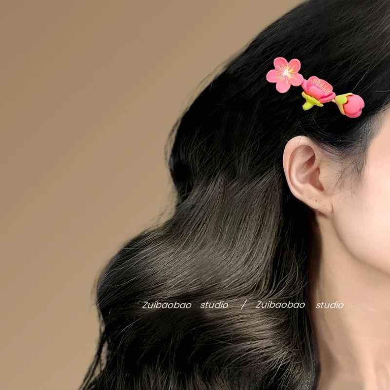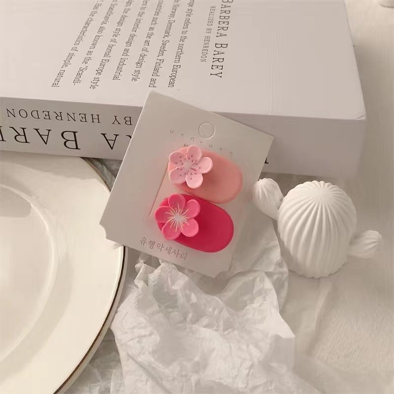핑크 복숭아 꽃 머리핀 ~ 달콤한 소녀의 마음 신선한 사이드 클립 헤어 액세서리 인 헤드폰 Bangs 클립 꽃 헤어 밴드스토어 가기