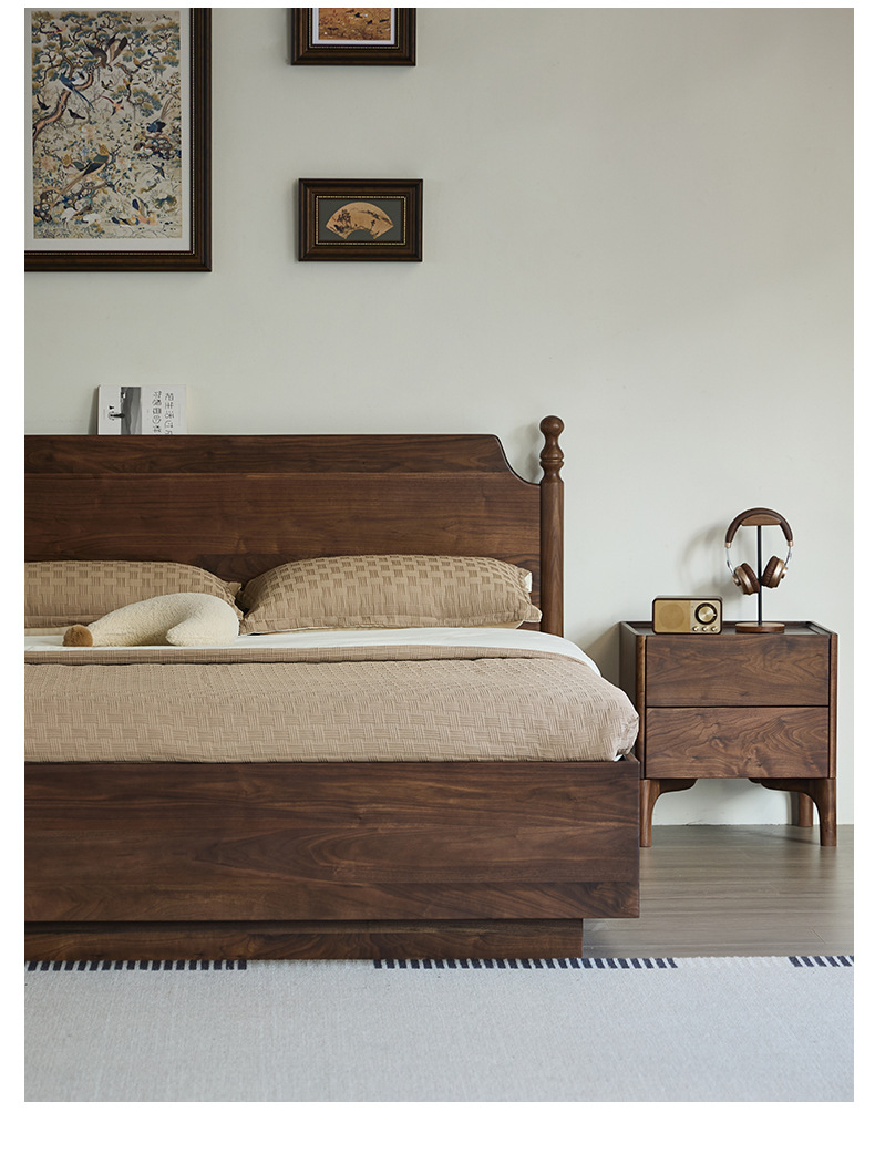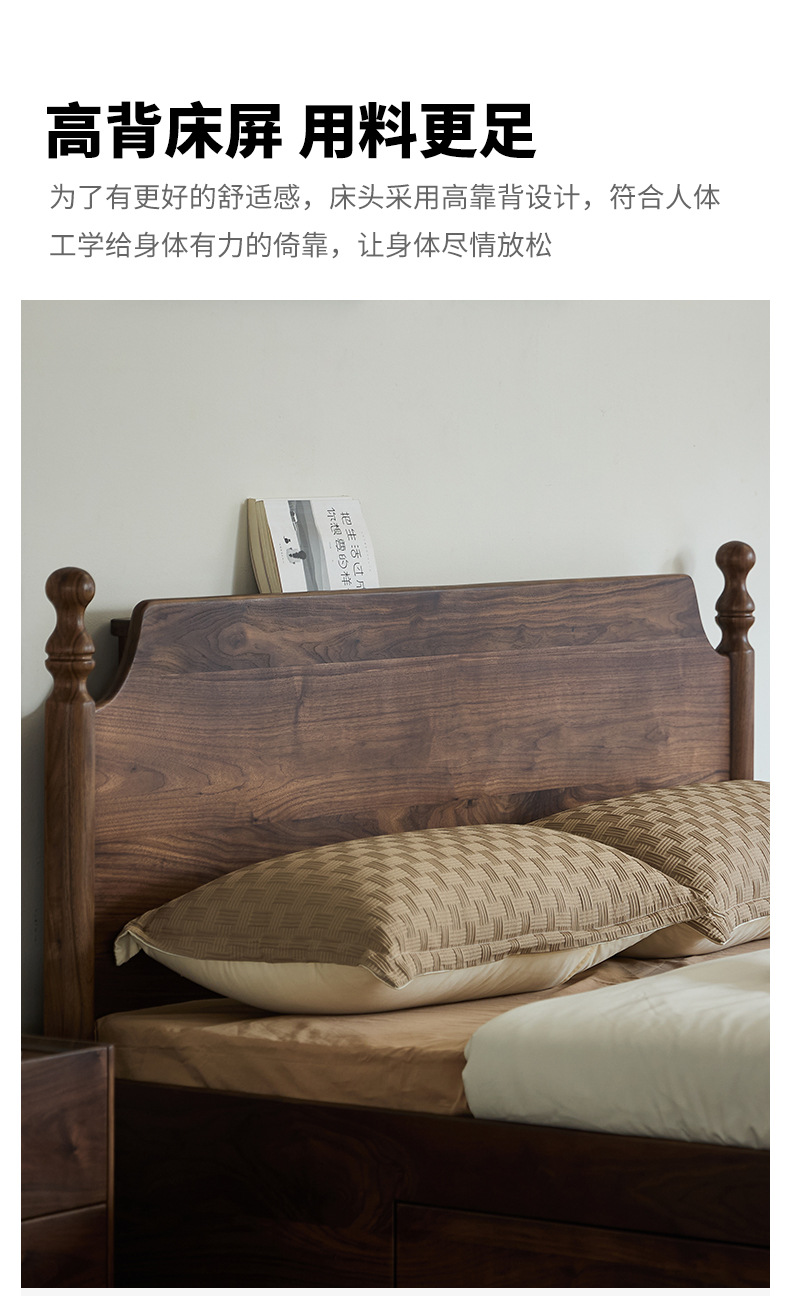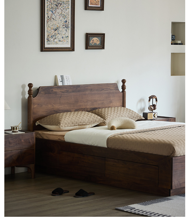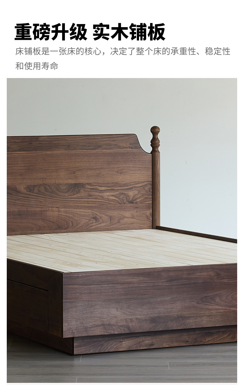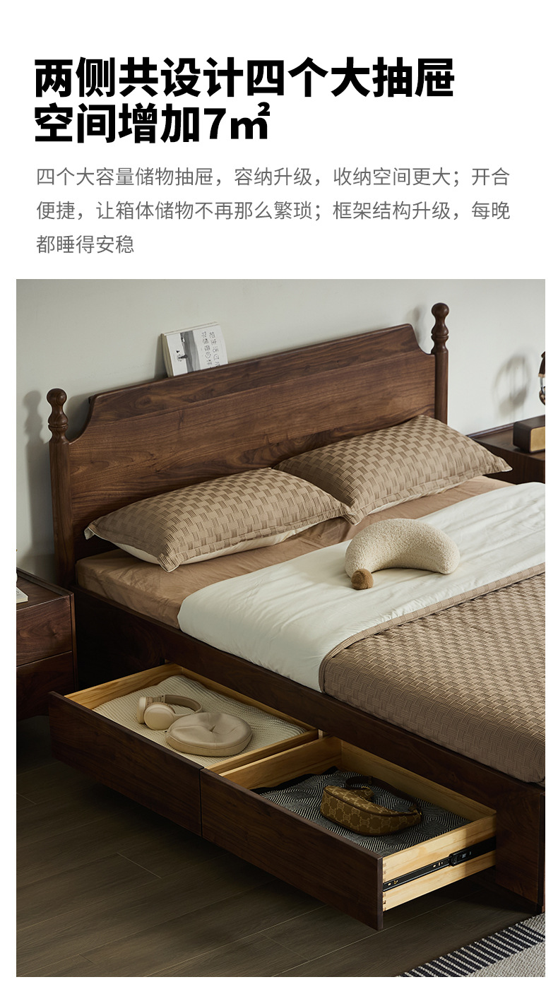 북미 검은 호두 단단한 나무 높은 상자 저장 침대 체리 나무 중세 스타일 1.68m 공기압 서스펜션 더블 침대스토어 가기