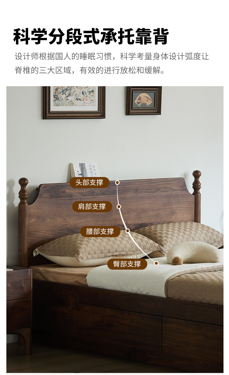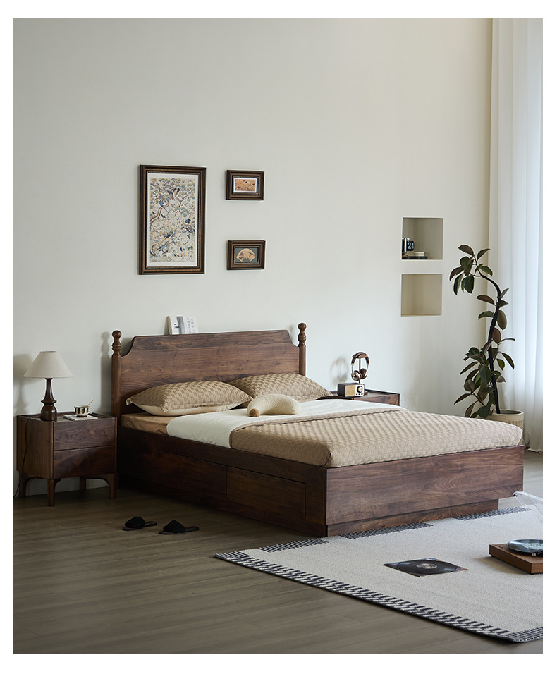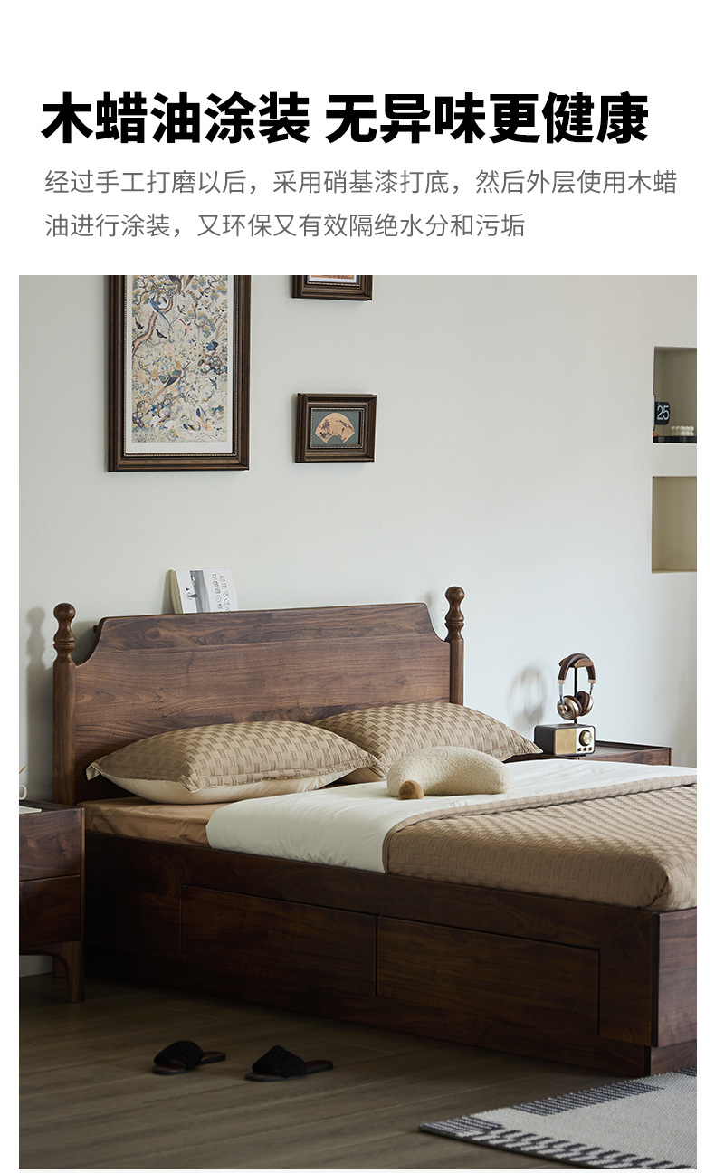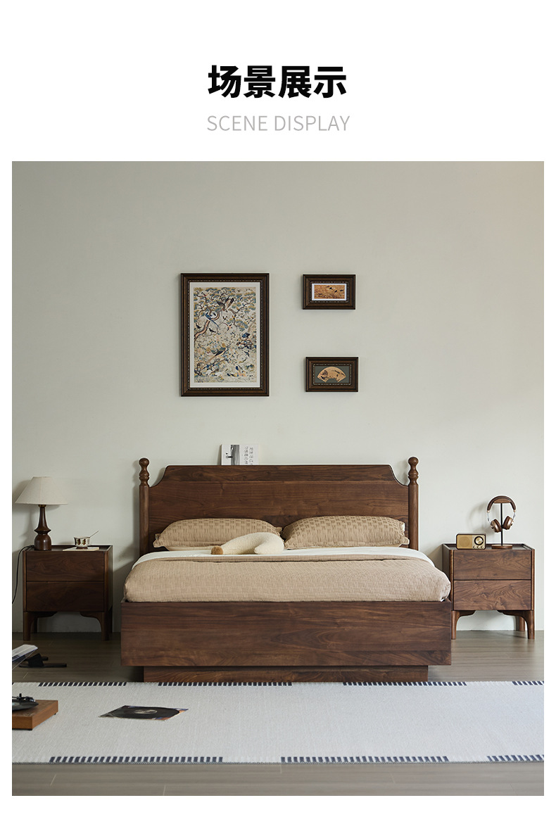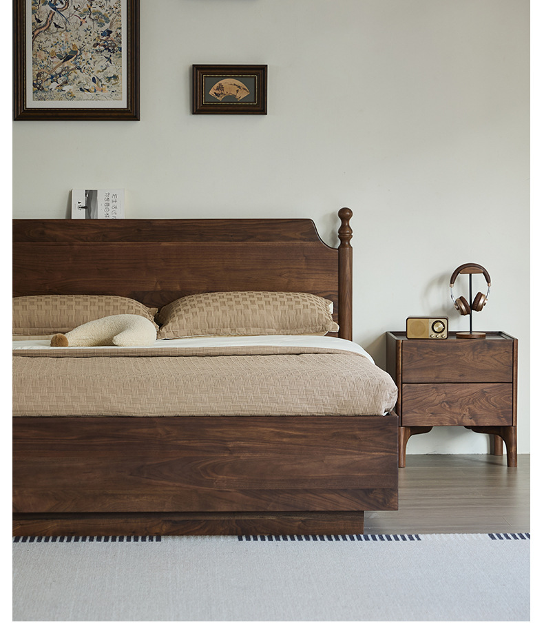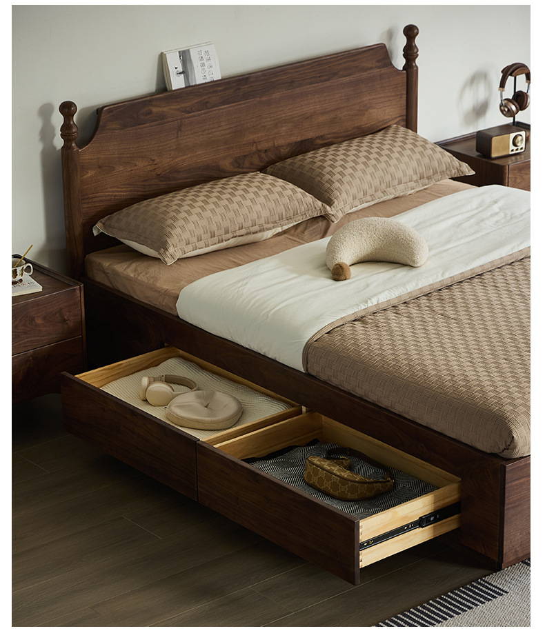 북미 검은 호두 단단한 나무 높은 상자 저장 침대 체리 나무 중세 스타일 1.68m 공기압 서스펜션 더블 침대스토어 가기