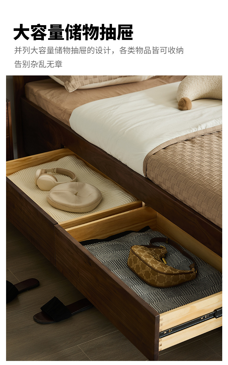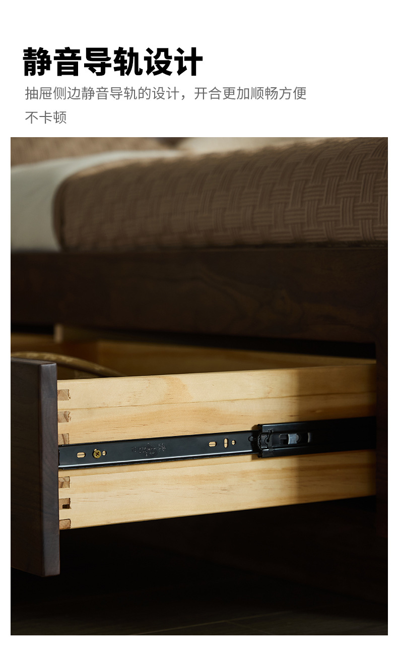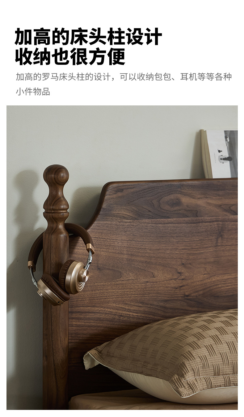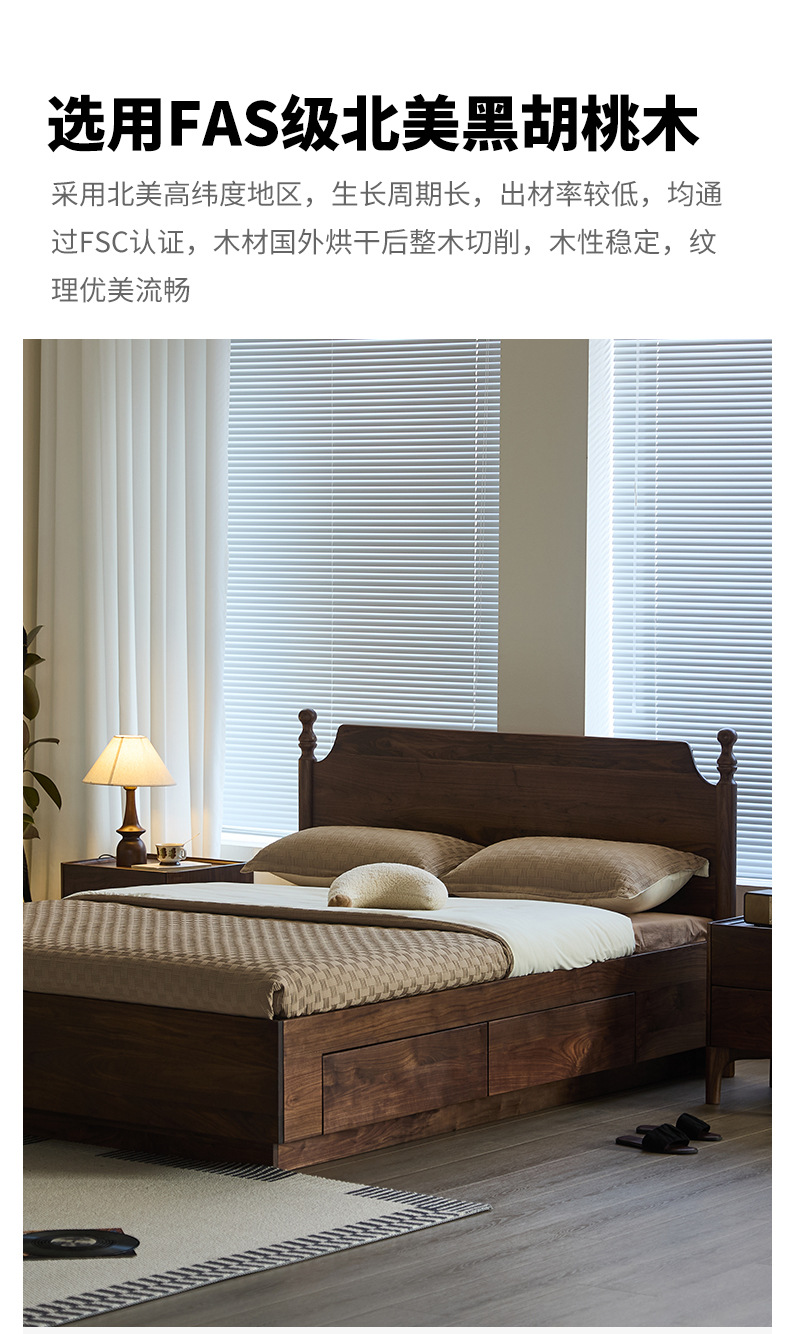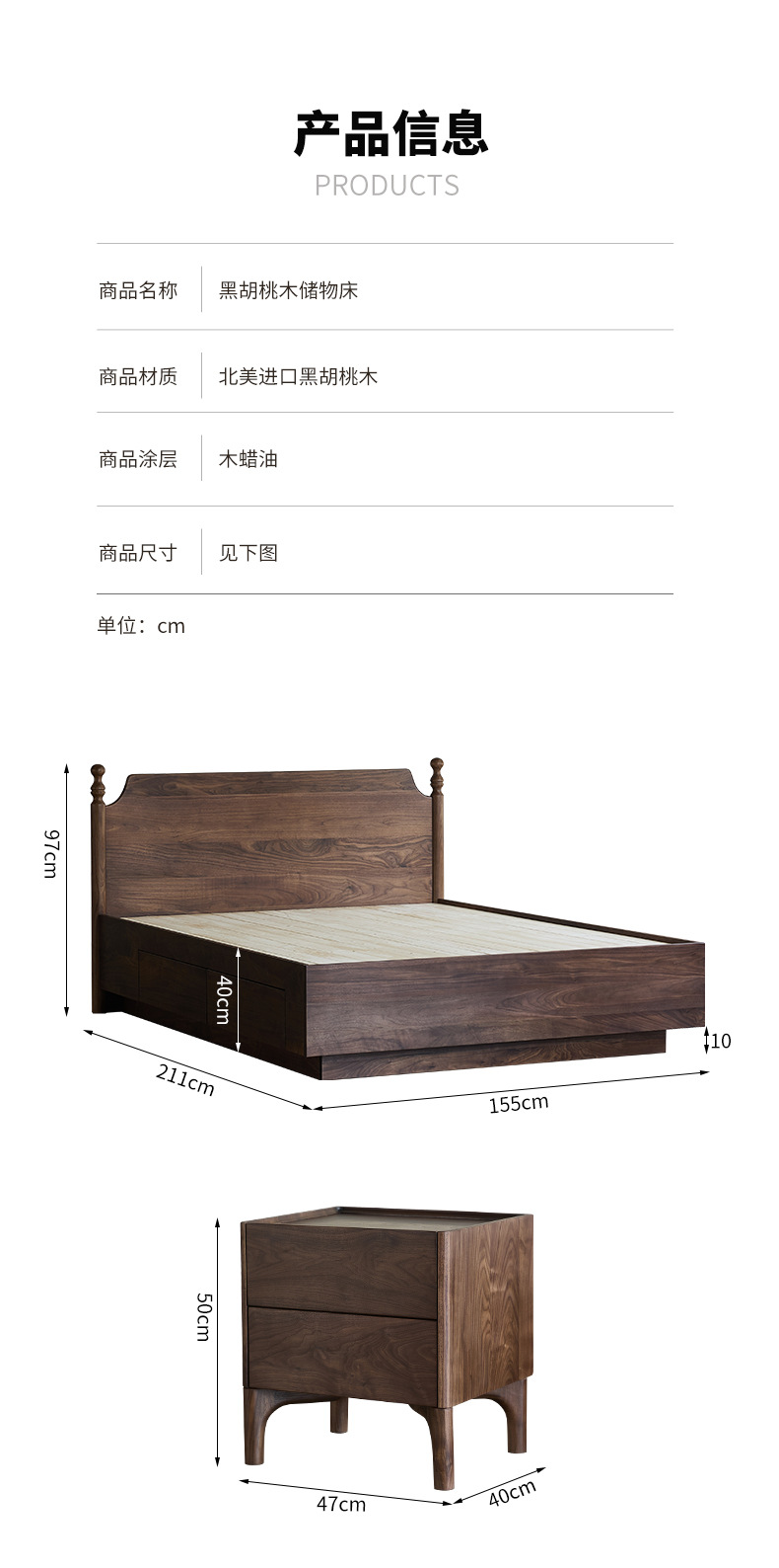 북미 검은 호두 단단한 나무 높은 상자 저장 침대 체리 나무 중세 스타일 1.68m 공기압 서스펜션 더블 침대스토어 가기