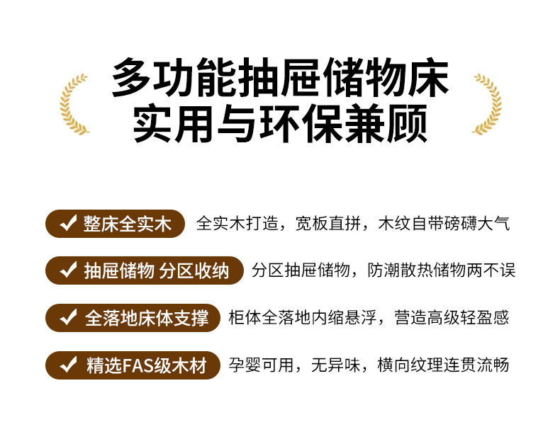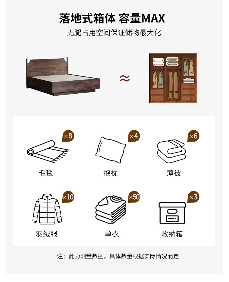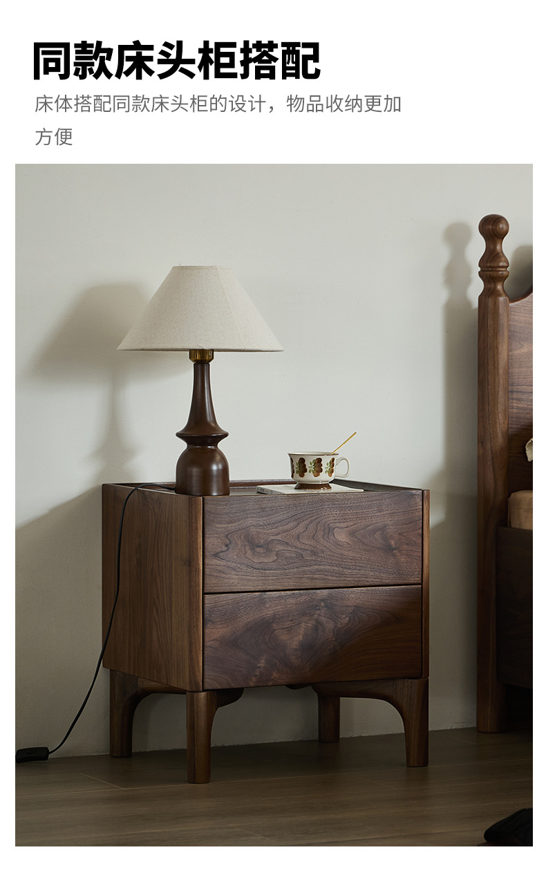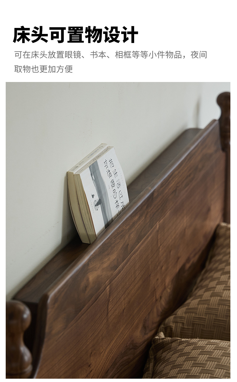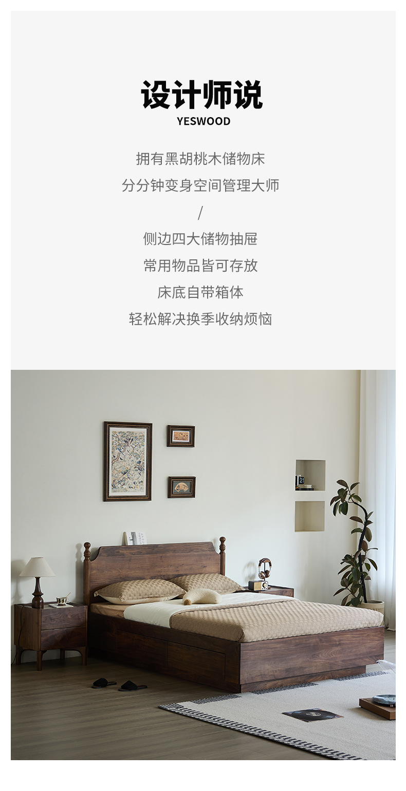 북미 검은 호두 단단한 나무 높은 상자 저장 침대 체리 나무 중세 스타일 1.68m 공기압 서스펜션 더블 침대스토어 가기
