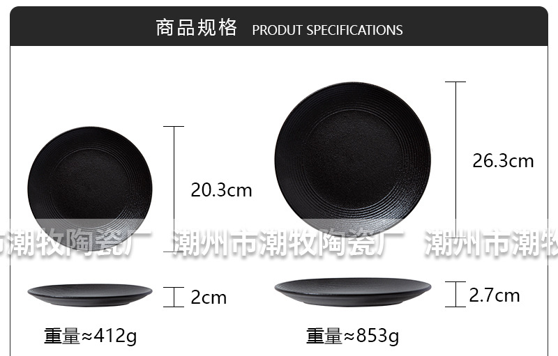 • 검은색 원형 라인 패턴 10inch 얕은 접시