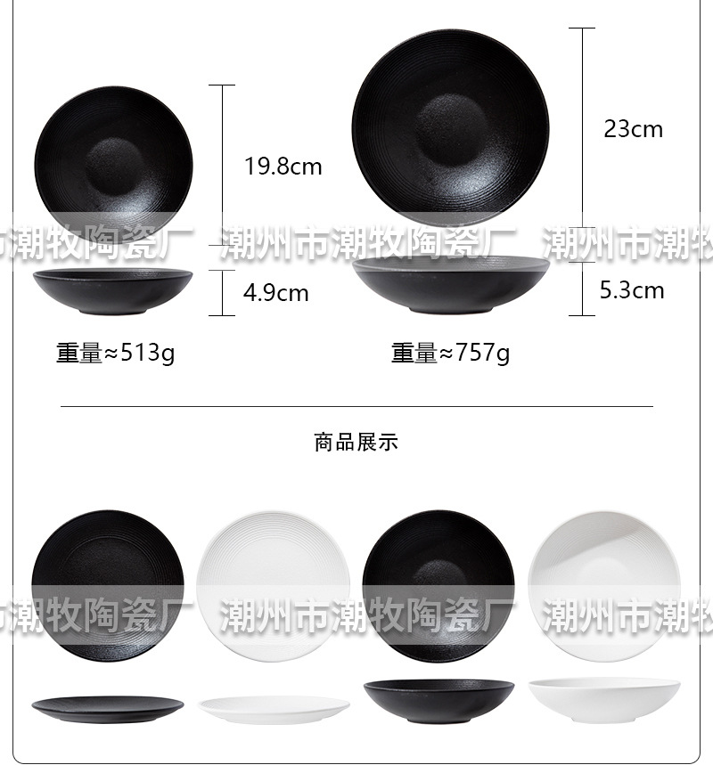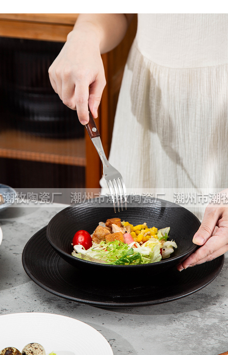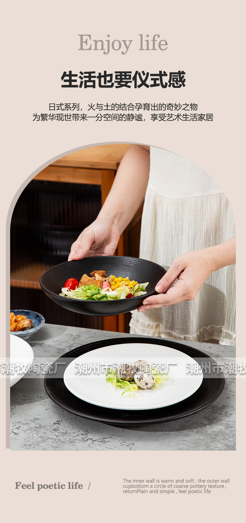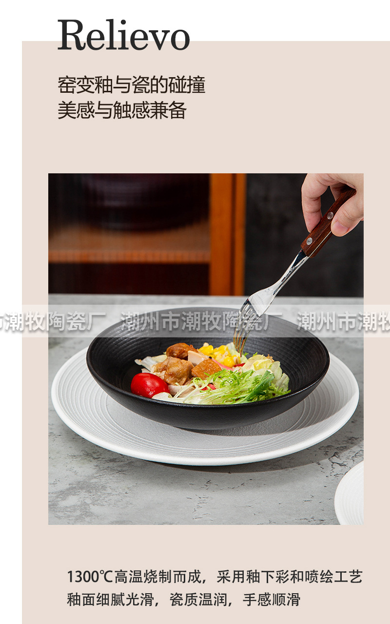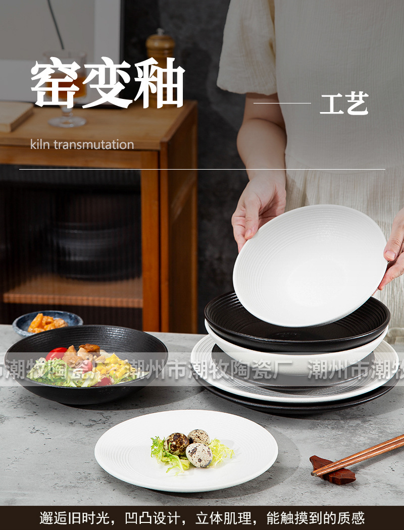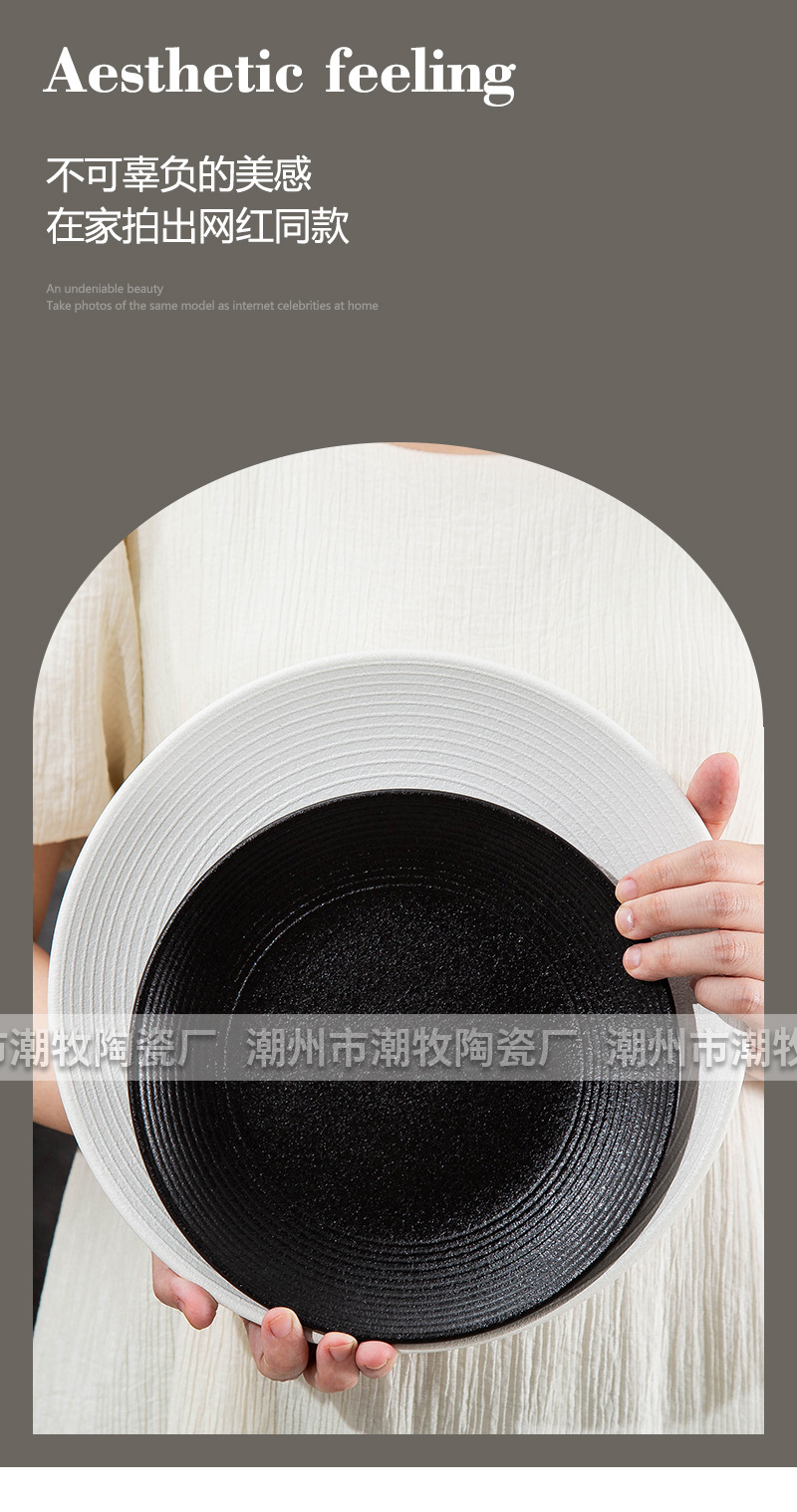 세라믹 서양 음식 접시 흑백 젖빛 마녀 파스타 접시 수프 접시 샐러드 접시 얕은 접시 호텔 식기 도매스토어 가기