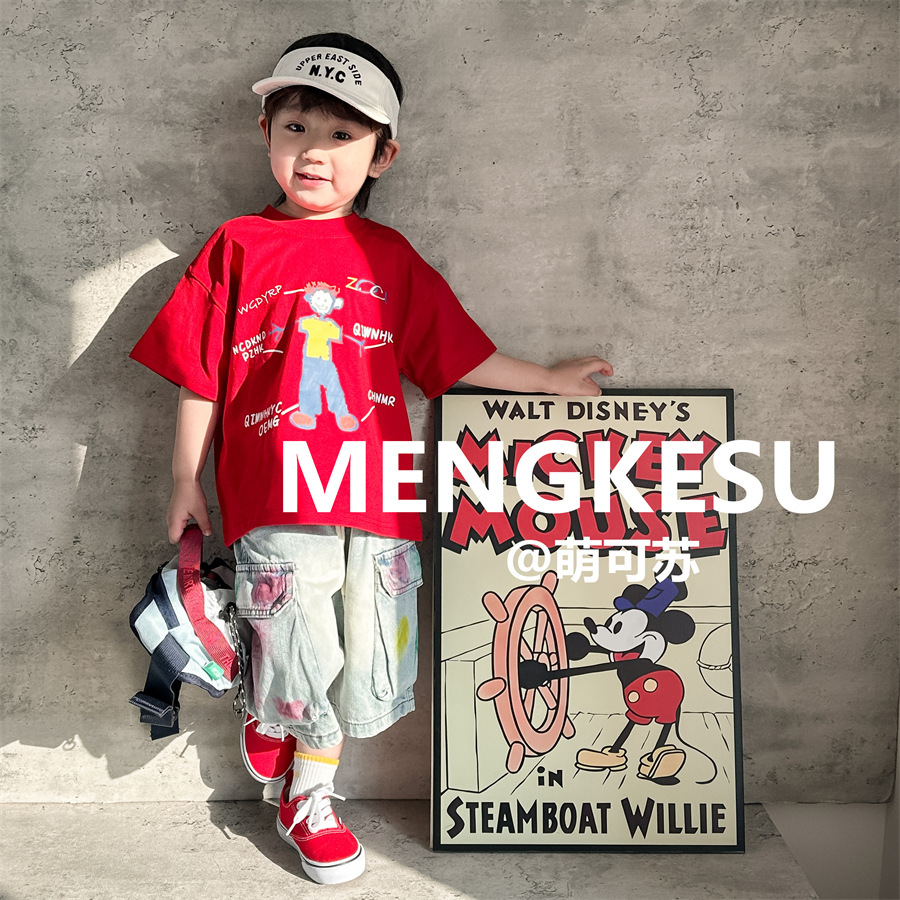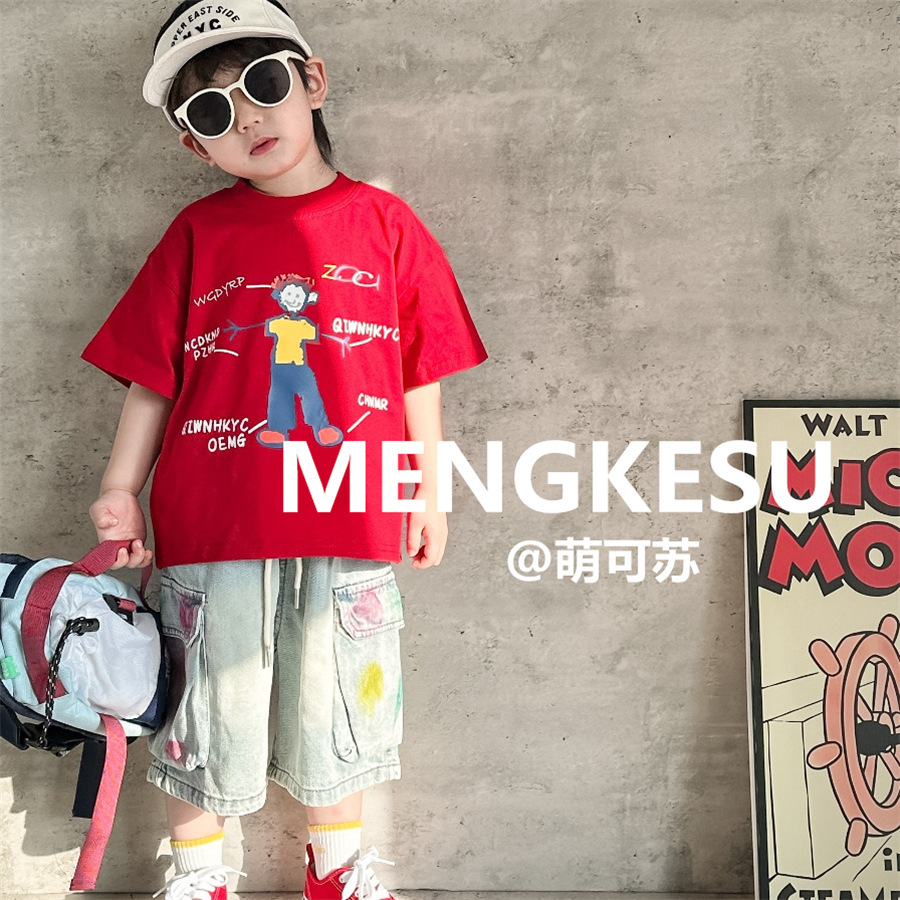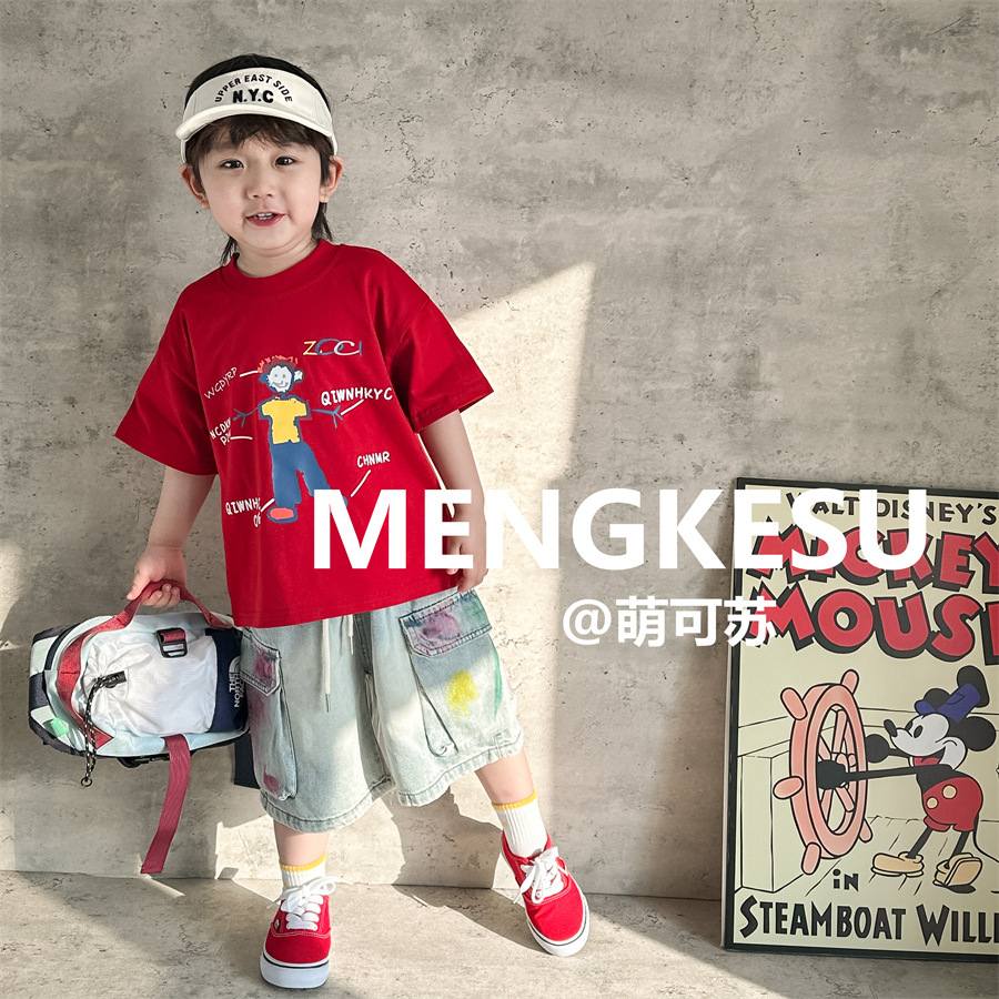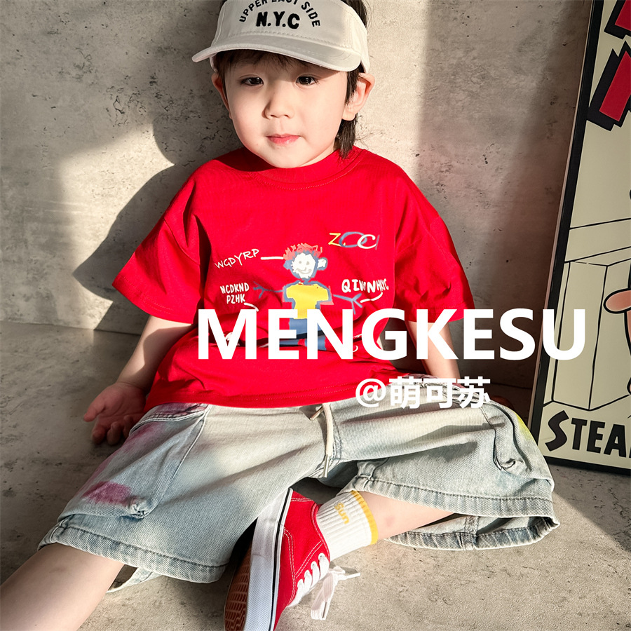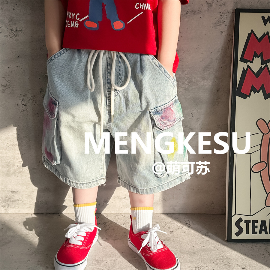 Moe Su Boys의 데님 반바지 2025 어린이 캐주얼 여름 바지 아기의 5 점 바지 중소 어린이 느슨한 바지스토어 가기
