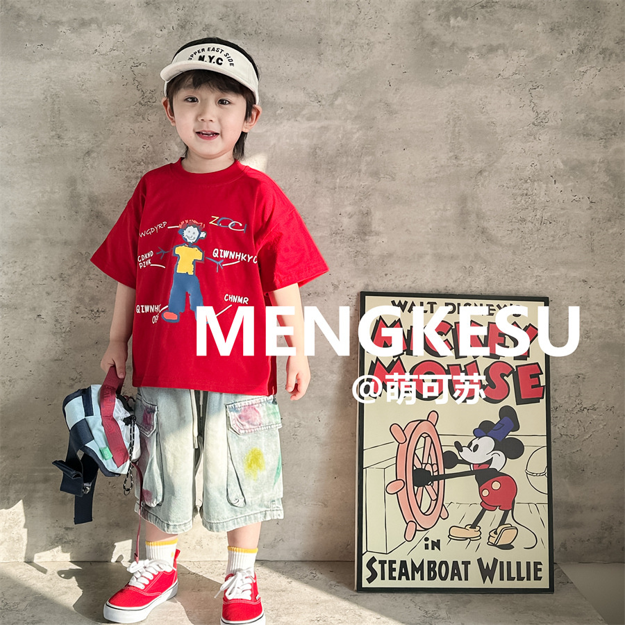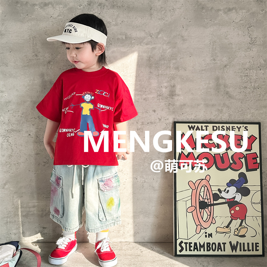 • ZOC 카툰 반팔 레드(순면 더블얀)