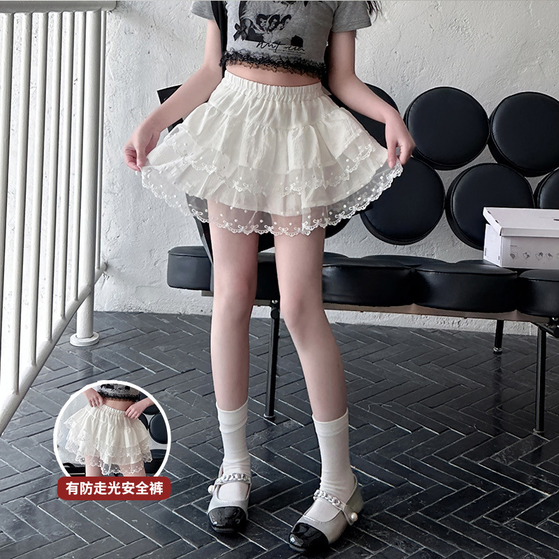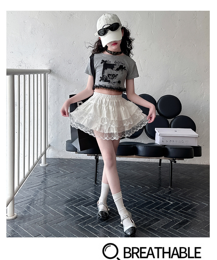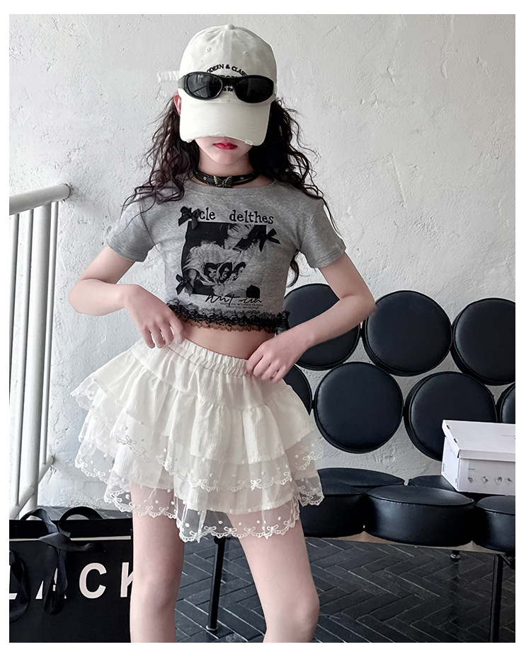 소녀 여름 반팔 세트 2025 새로운 스타일 서양식 캐주얼 티셔츠 대형 어린이 스위트 레이스 스커트 투피스 세트