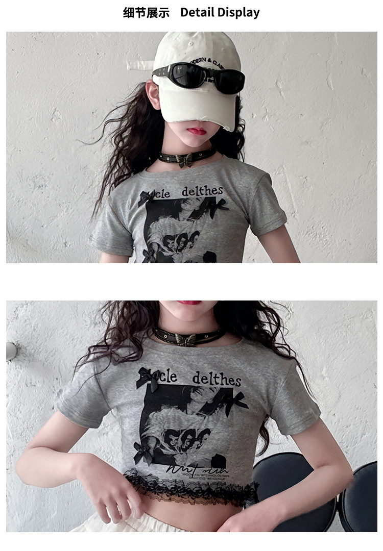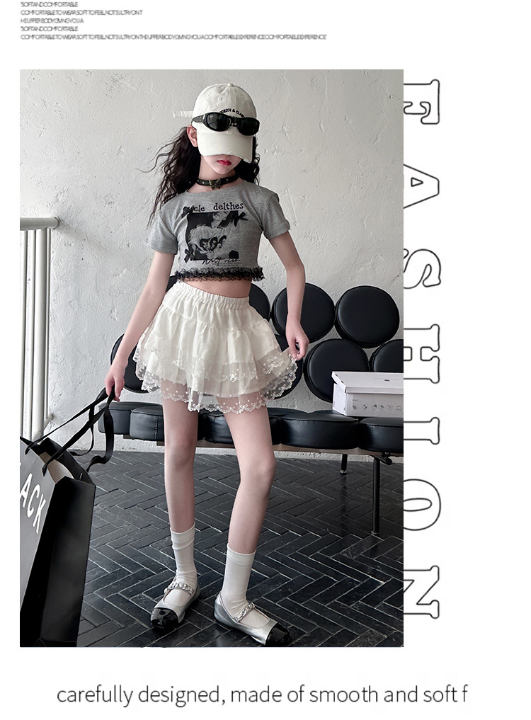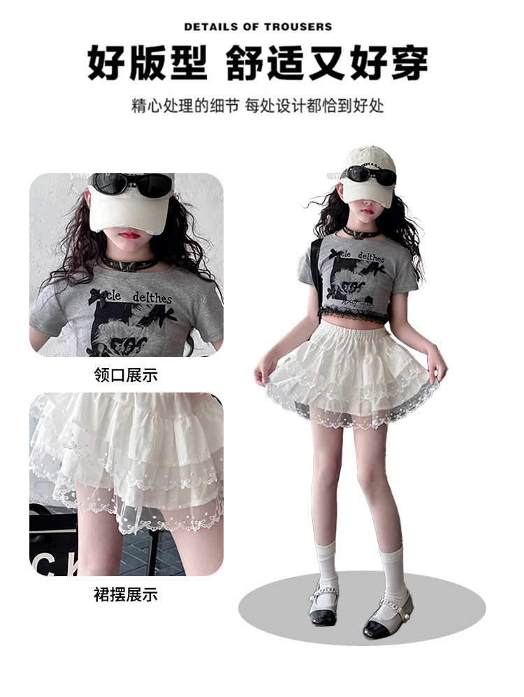 소녀 여름 반팔 세트 2025 새로운 스타일 서양식 캐주얼 티셔츠 대형 어린이 스위트 레이스 스커트 투피스 세트스토어 가기