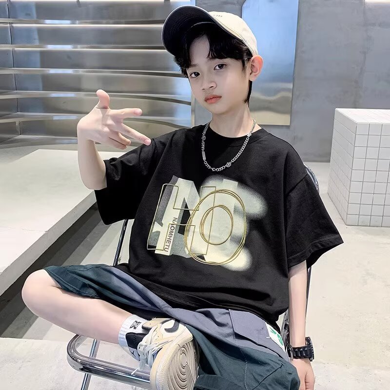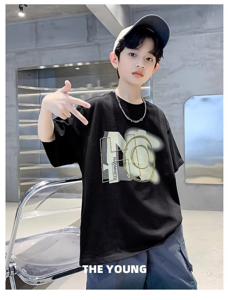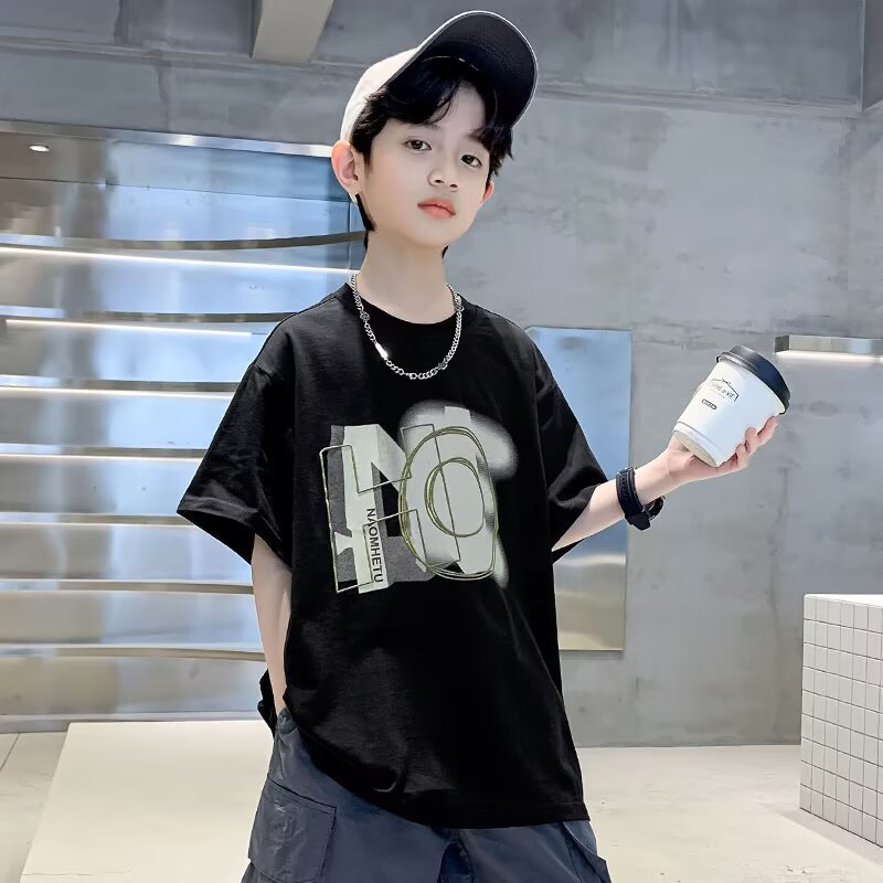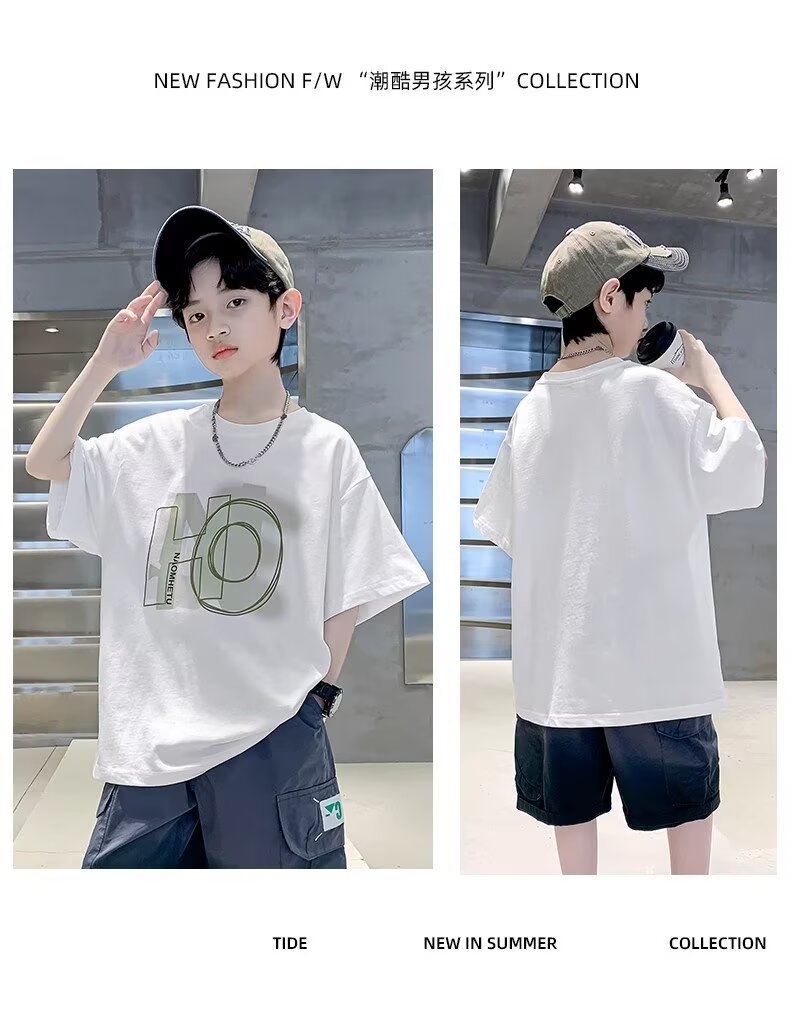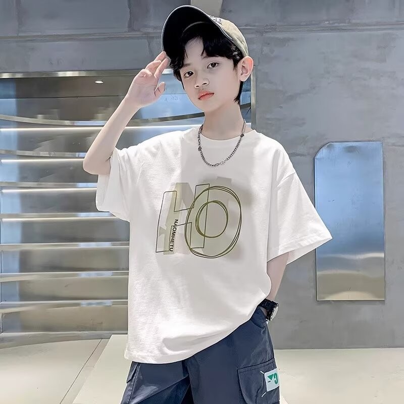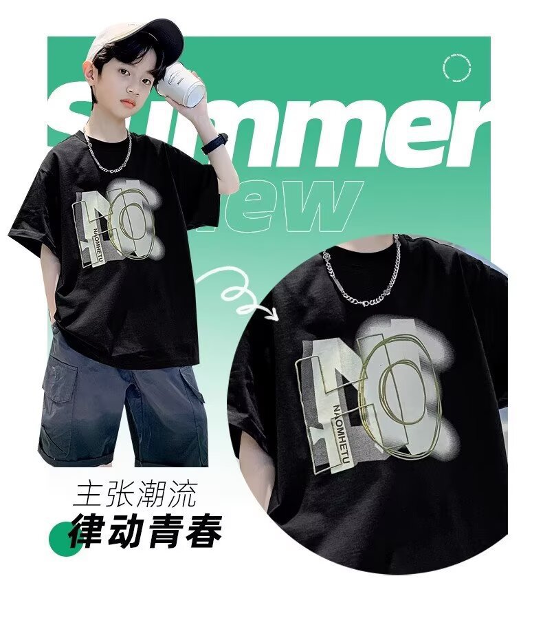 아동복 소년 반팔 티셔츠 여름 2025 한국 스타일 새로운 어린이 빅 어린이 여름 소년 여름 탑 트렌디 티셔츠스토어 가기