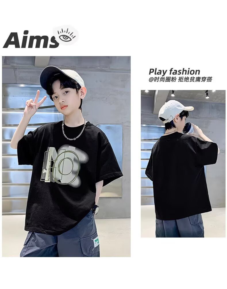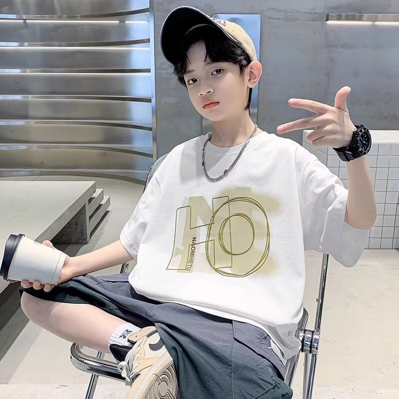 아동복 소년 반팔 티셔츠 여름 2025 한국 스타일 새로운 어린이 빅 어린이 여름 소년 여름 탑 트렌디 티셔츠