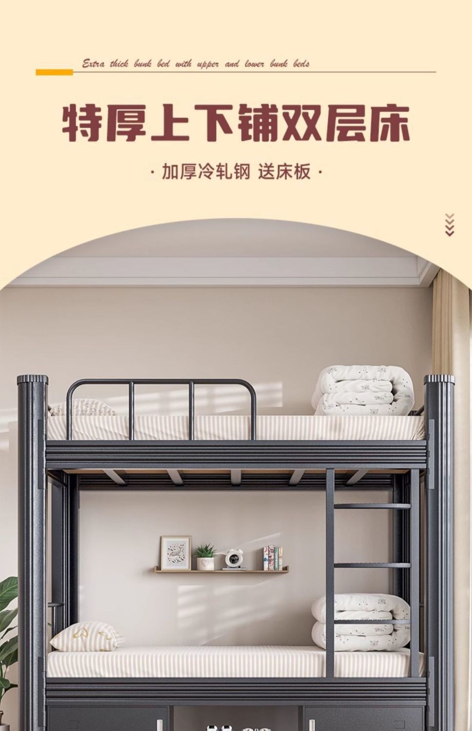 상하 이층 철침대 이층 직원 기숙사 침대 철제 학생 아파트 높고 낮은 철제 프레임 침대 공장 현장 더블 침대스토어 가기