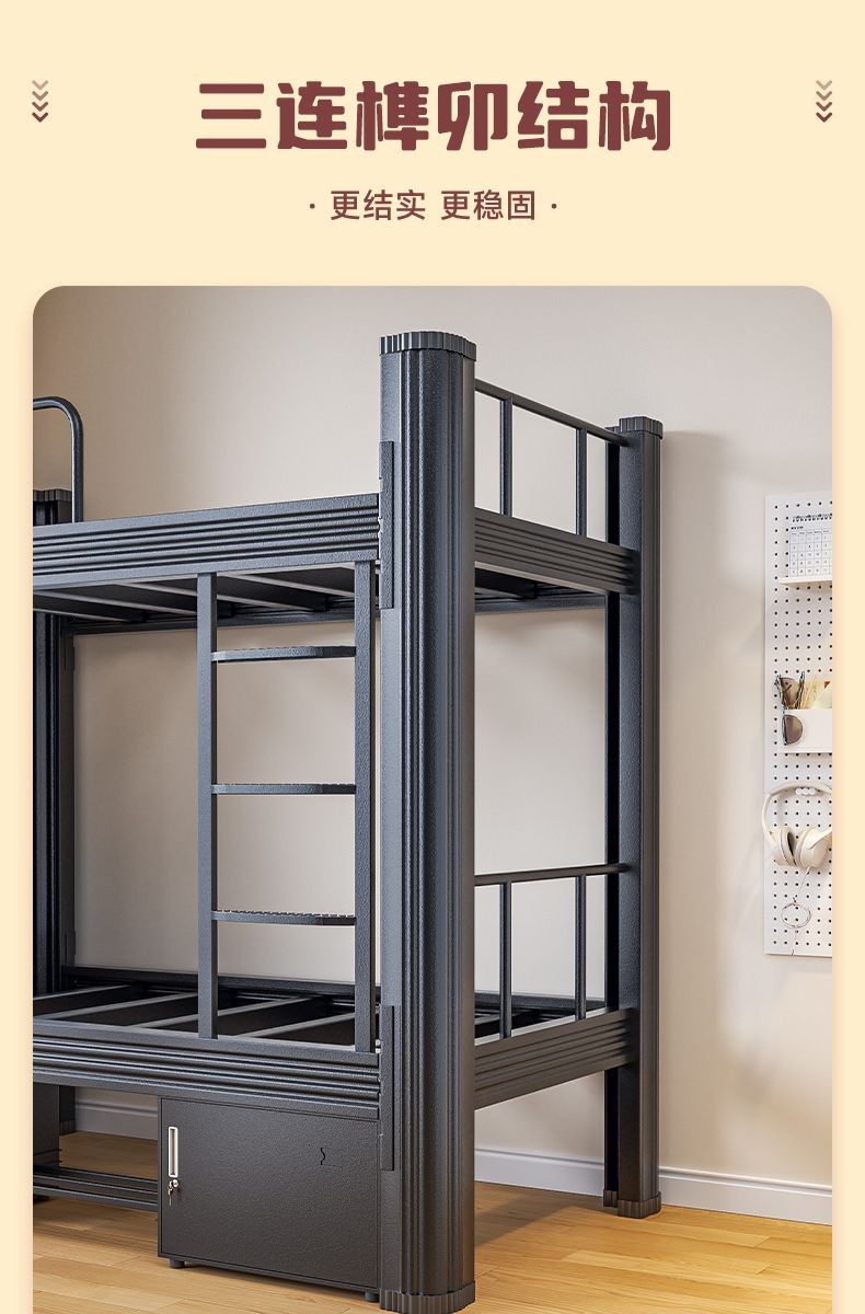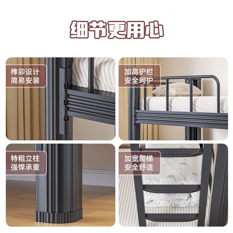 상하 이층 철침대 이층 직원 기숙사 침대 철제 학생 아파트 높고 낮은 철제 프레임 침대 공장 현장 더블 침대